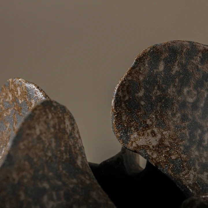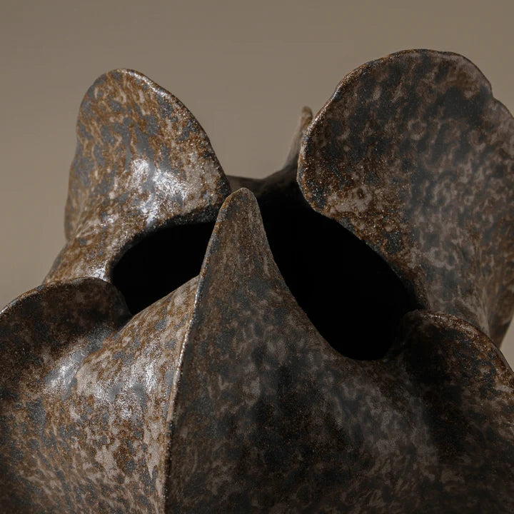 The Seahome Vase, brings a sculptural aesthetic to any space. Its dramatic silhouette and pod-like form draw inspiration from the organic textures of sea creatures which makes this piece feel both grounded and fluid. The amorphous shape and tactile surface evoke a sense of natural movement, as though shaped by water and time. This design reflects the beauty of earth and ocean in its organic finish. Whether styled as a standalone focal point or paired in its two finishes, the Seahome Vase adds depth and dimension to console tables, shelving, or entryways.