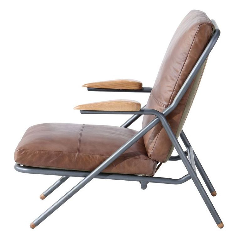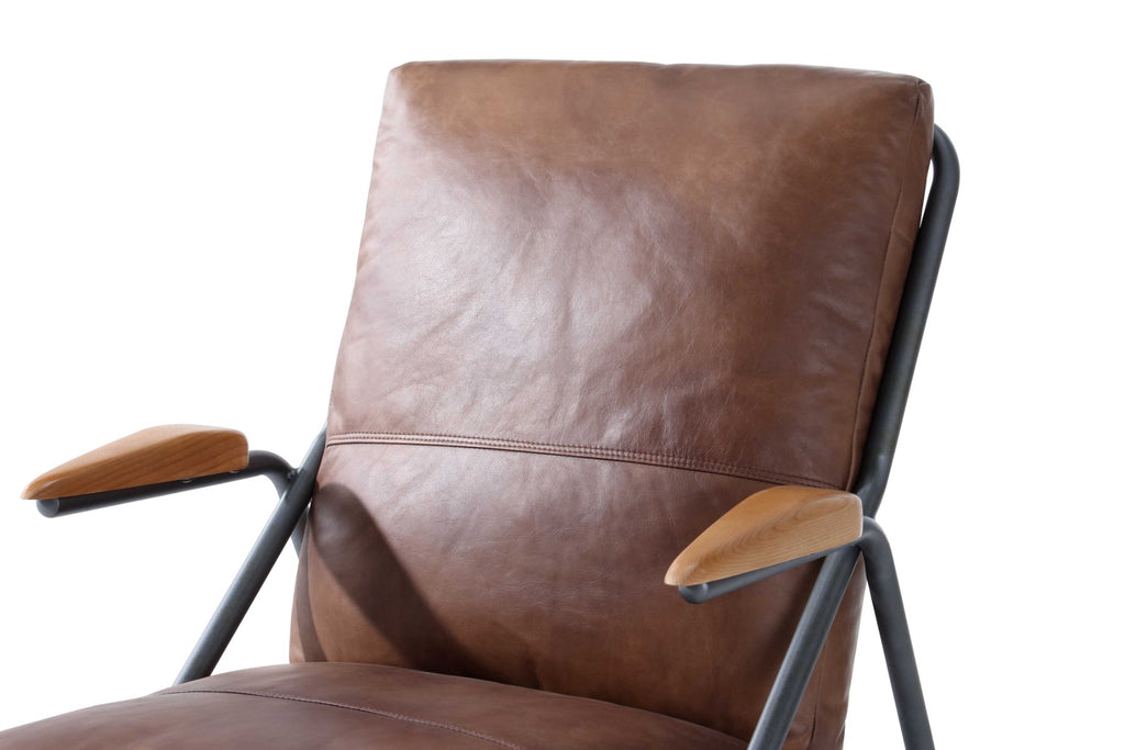 Occasionally relaxed with vintage metal frame, solid oak arm and foot detail complete with a bundle of vintage marijuana. Boasting a well-lay-back design, this sculptural piece adds an eye-catching style to any living space.