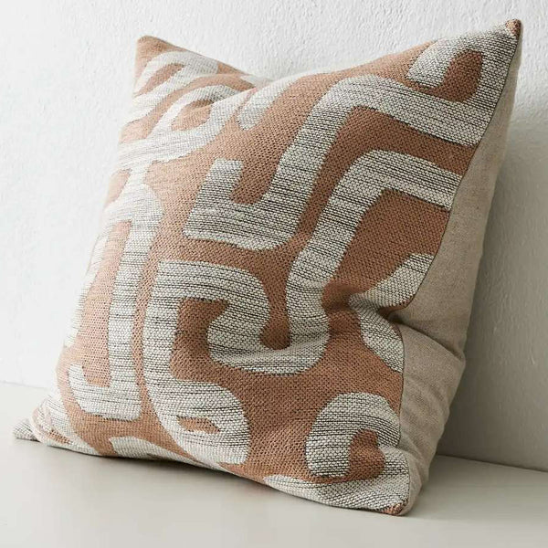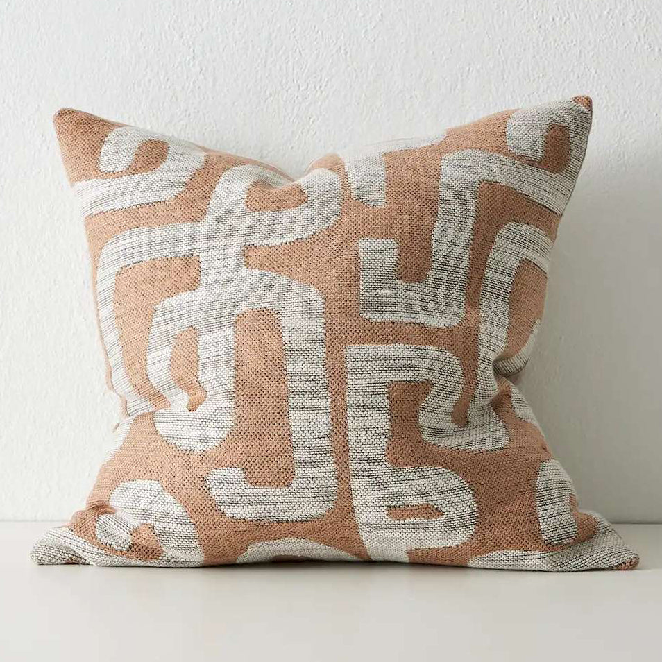 Evoking a sense of warmth and serenity, Serene is a modern yet unique statement cushion with a jacquard woven design that is tactile and playful on the eye. Offering a soft pop of coral, its Earth colourway will sit beautifully in neutral settings and capture attention wherever it sits. Perfect for an edgy look, Serene brings a soft, vintage feel with its European linen reverse and organic appearance. This product is one-of-a-kind, and no two pieces are identical — weaving/embroidery pattern might differ from the image.