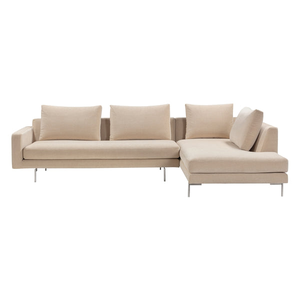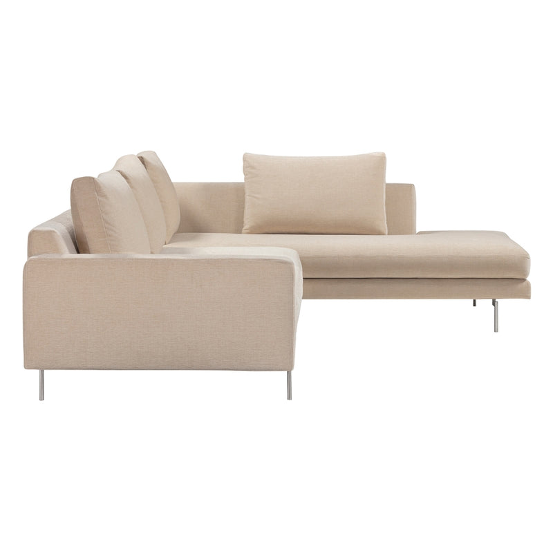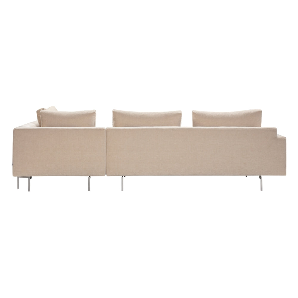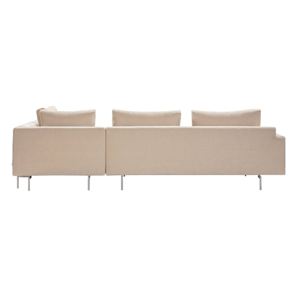 The Edge V2 Sofa takes its origin point in the idea of lines, running between its frame and cushion for a slight, elegant gap, across its linear armrests and throughout its soft, loose pillows. The design floats on a delicately designed base of steel.