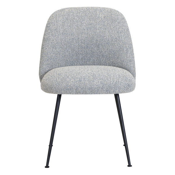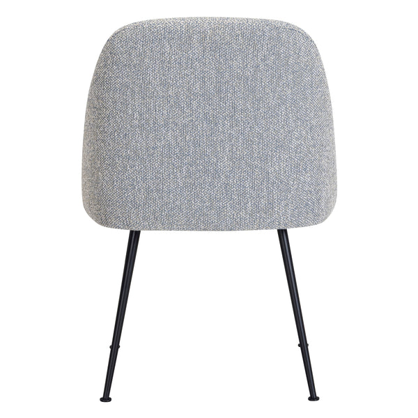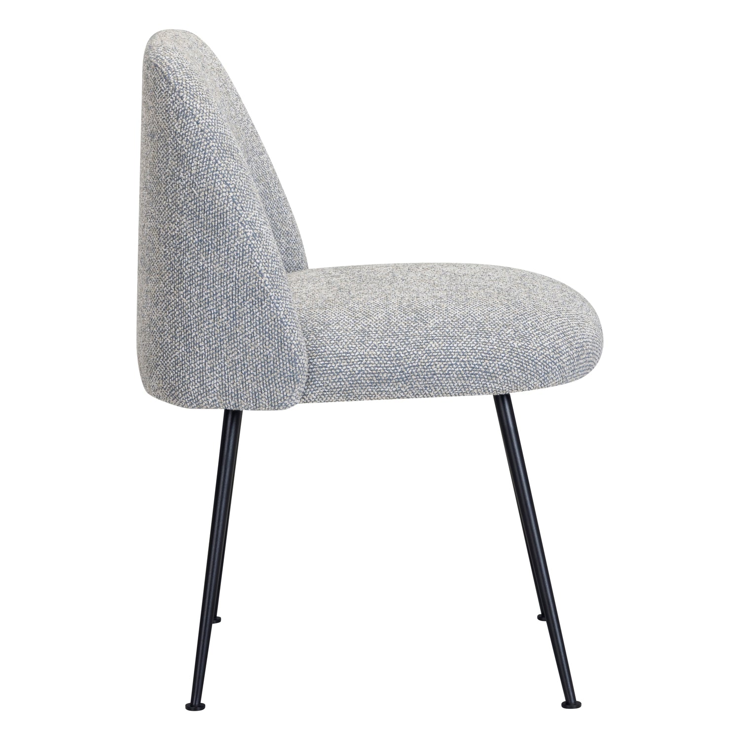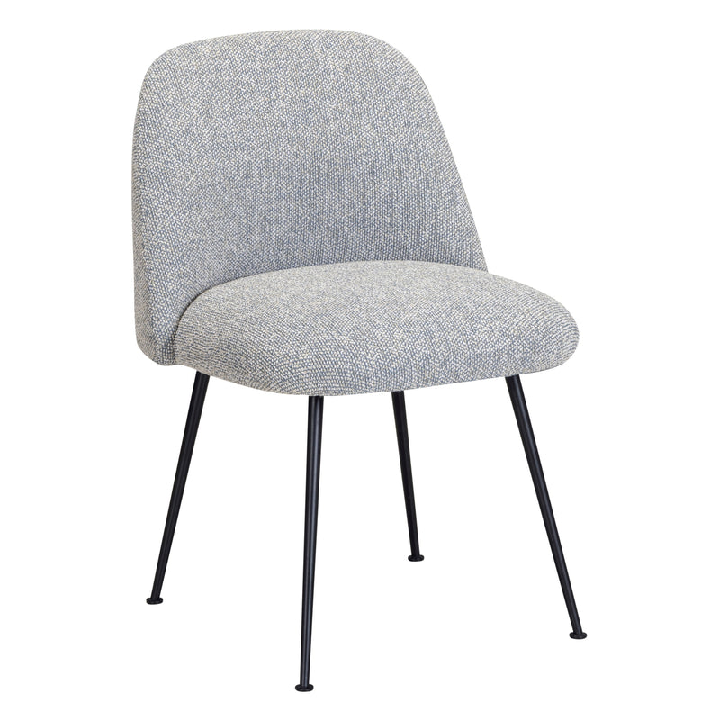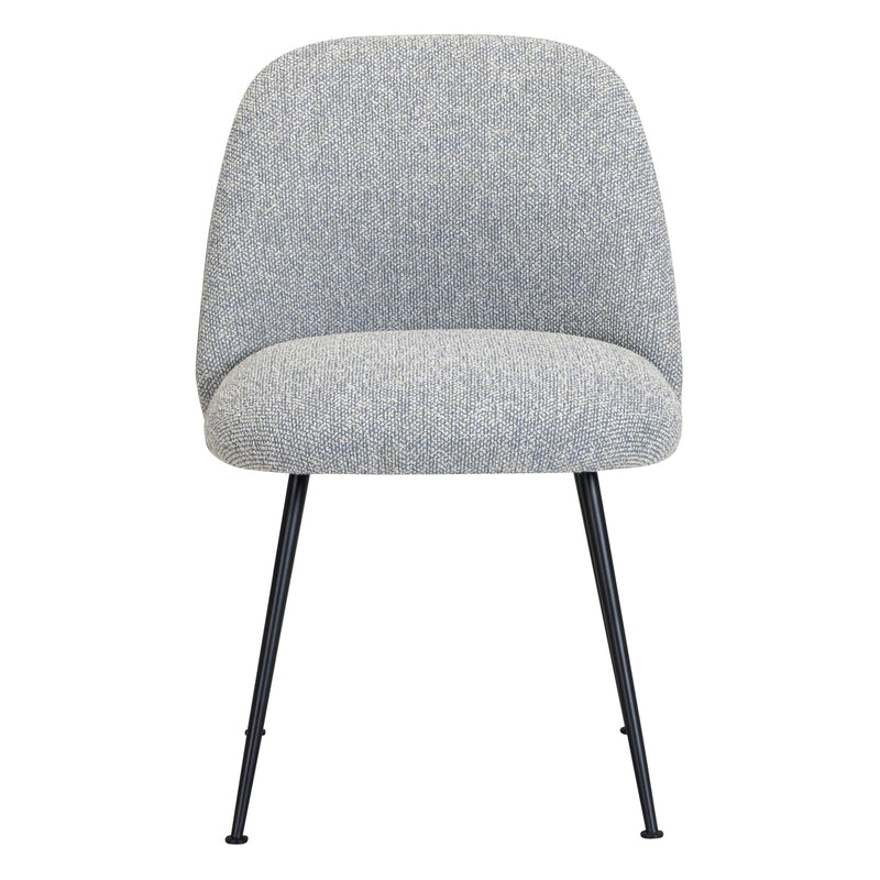 The chair is offered with legs in black powder-coated steel as well as brown and black stained oak. The outer sides of the oak legs are rounded, whilst the inner part is plane and meets the wooden seat frame in an elegant curve. With an almost invisible transition between the upholstered seat and the legs, the steel version adds a more graphic character to the design, further accentuated by its slim and tapered profile.