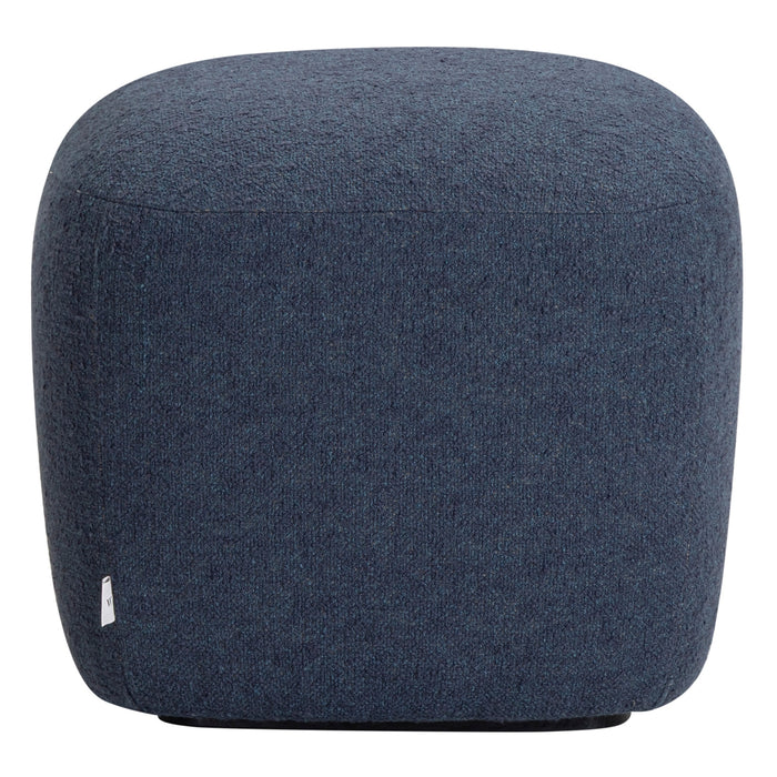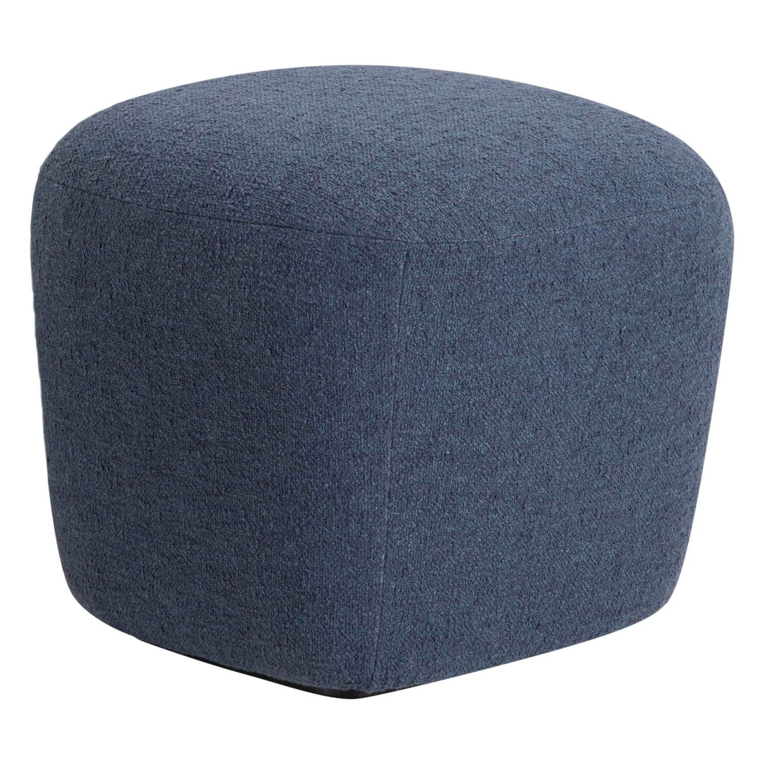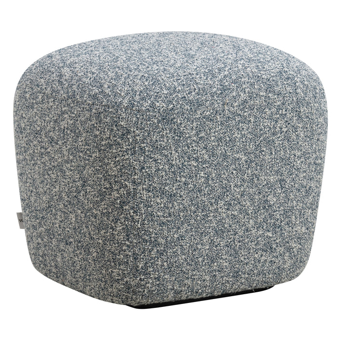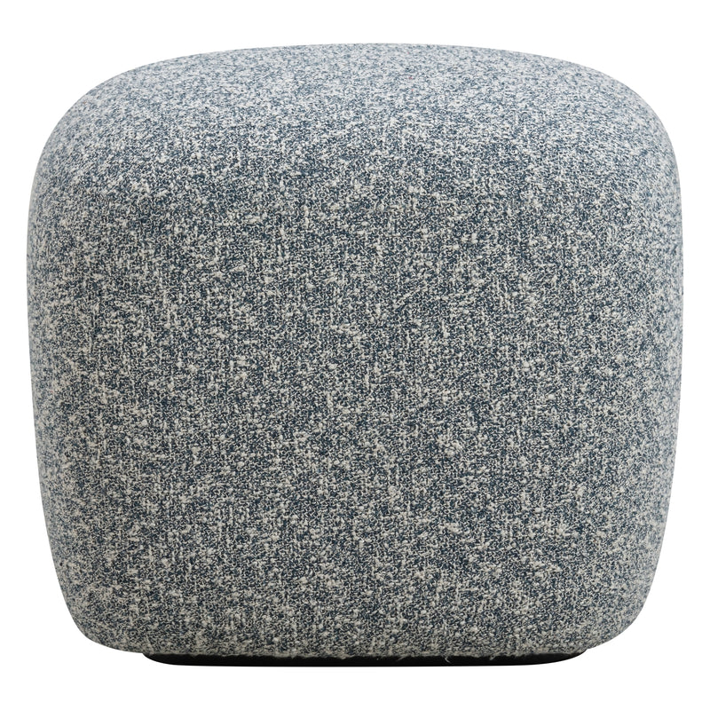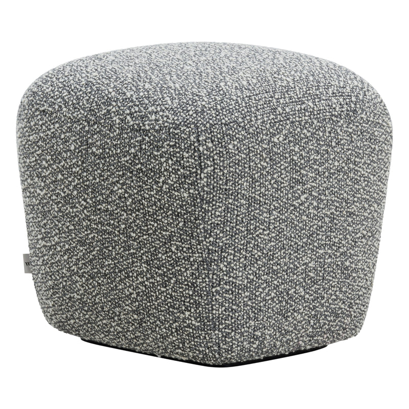 The petite proportions of the compact chair and pouf are meticulously designed with gently angled fronts, ensuring ample foot clearance. Fully upholstered sides extending to the ground result in a compact footprint and a visually light expression, displaying a charismatic and cute aesthetic.