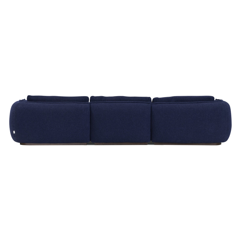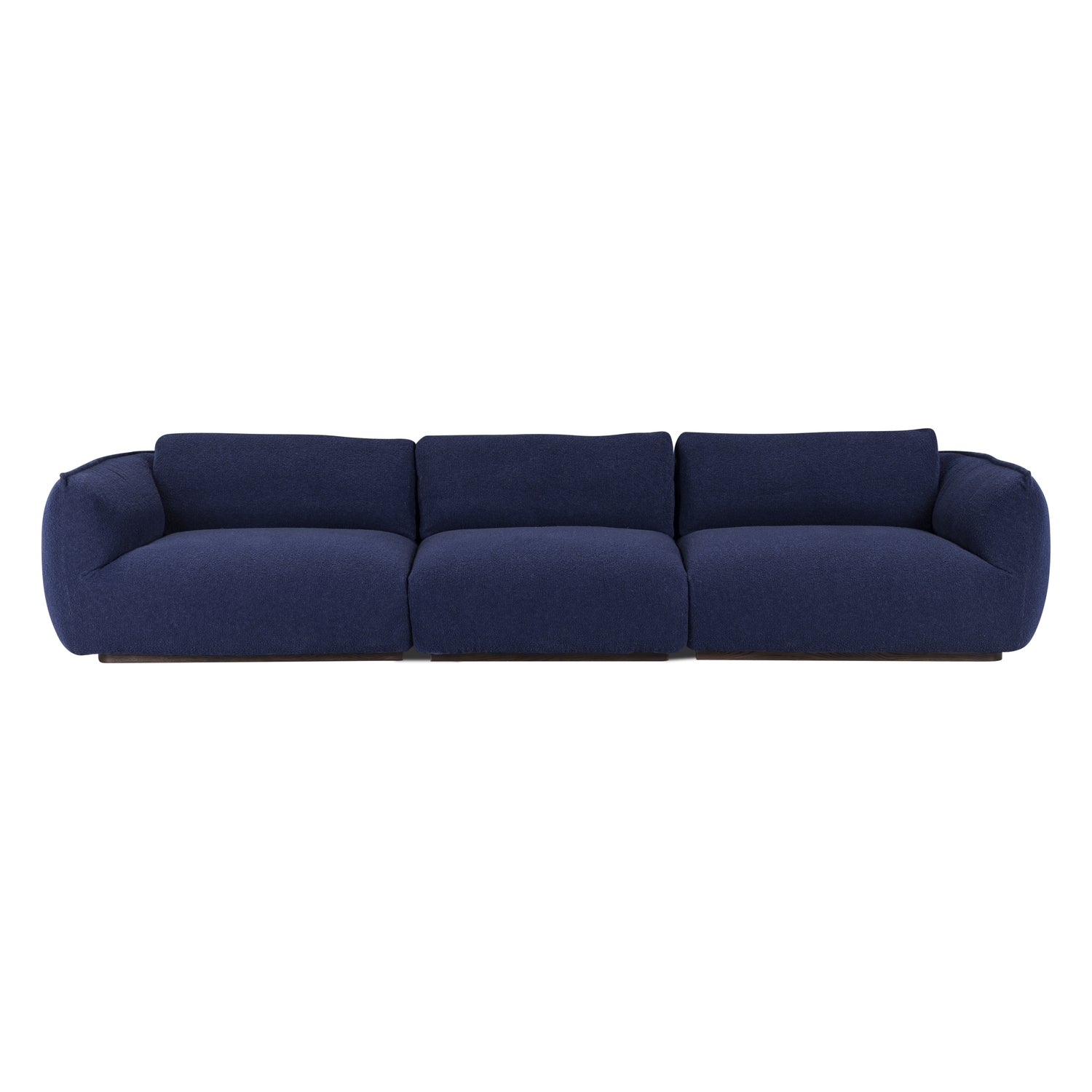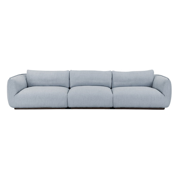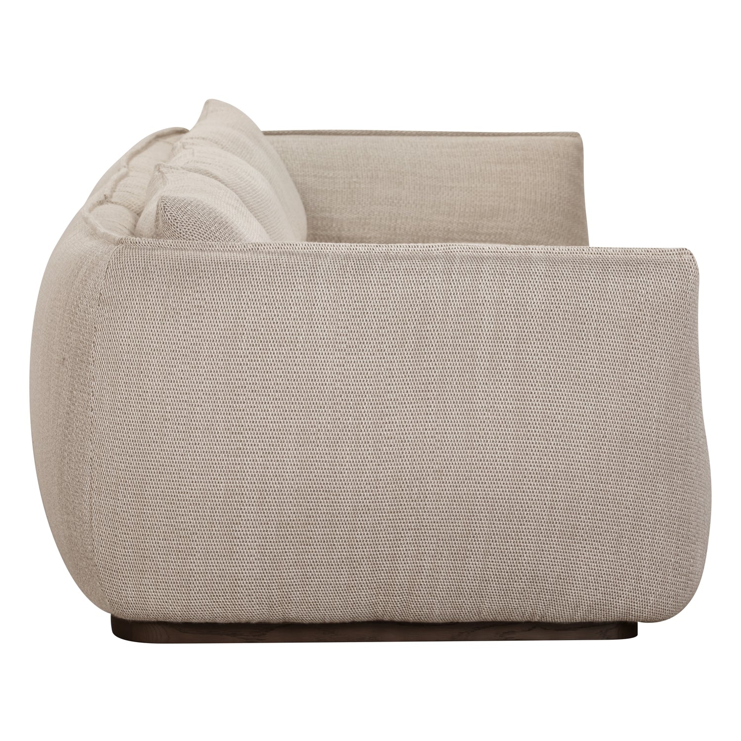 Available as a 2- and 3-seater, Ridge is subtly elevated from the floor on a recessed wooden base. The design blends relaxed comfort with a composed, architectural presence.