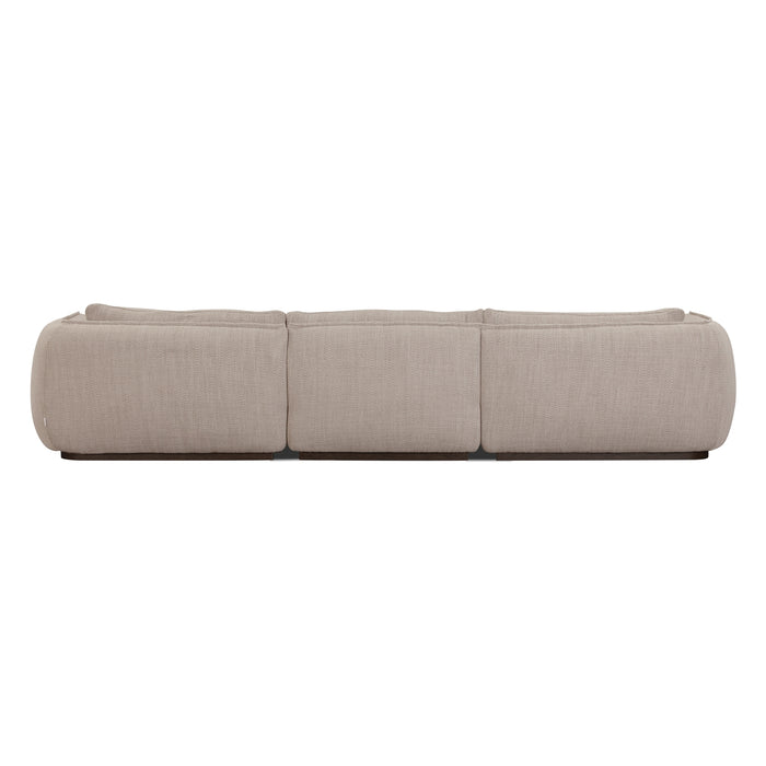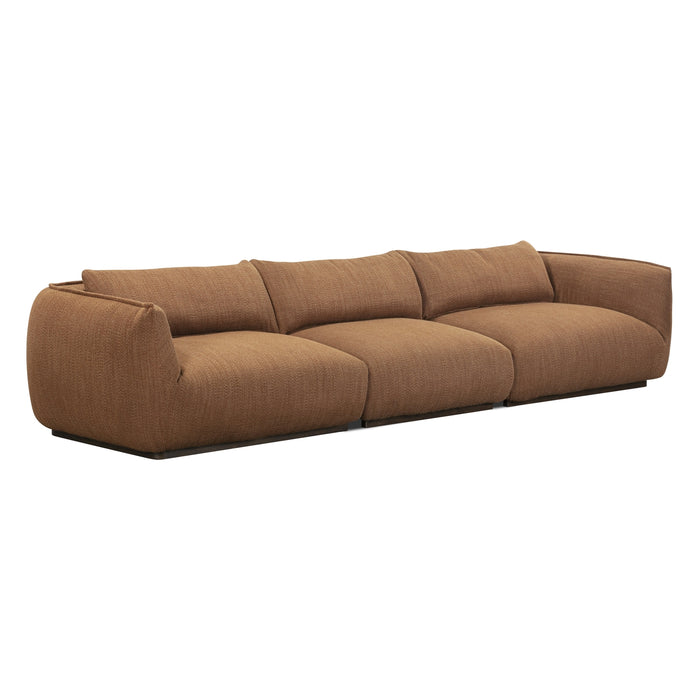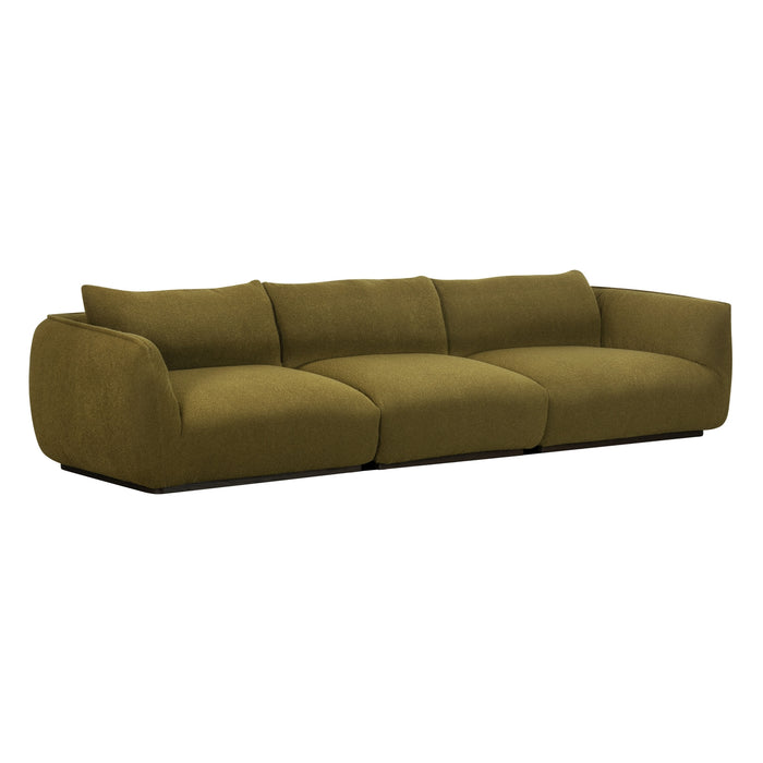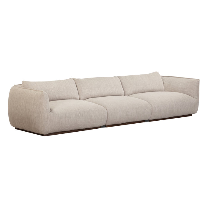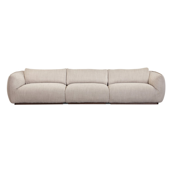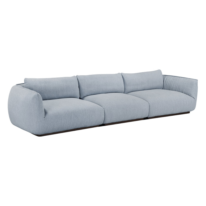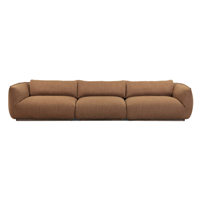Available as a 2- and 3-seater, Ridge is subtly elevated from the floor on a recessed wooden base. The design blends relaxed comfort with a composed, architectural presence.