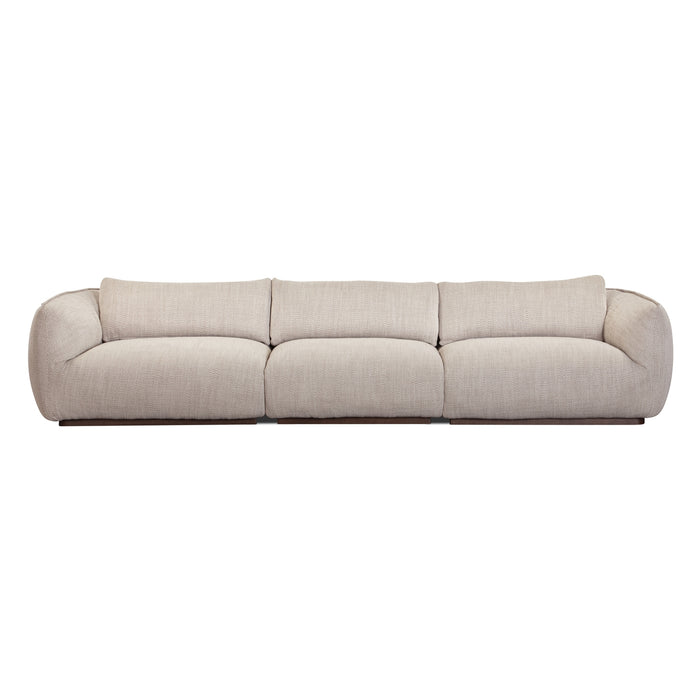 A single flange edge running along the top edge draws the eye, forming a subtle ridge that defines the outline and lends the sofa its name.