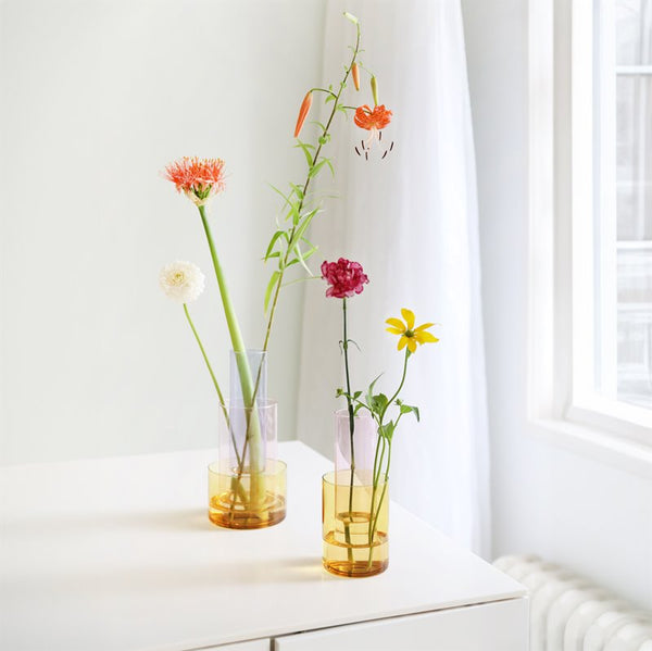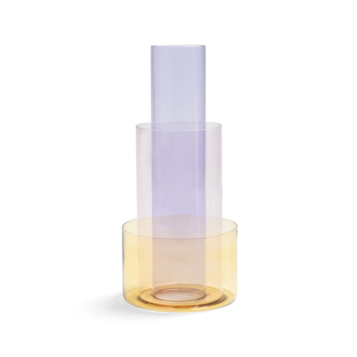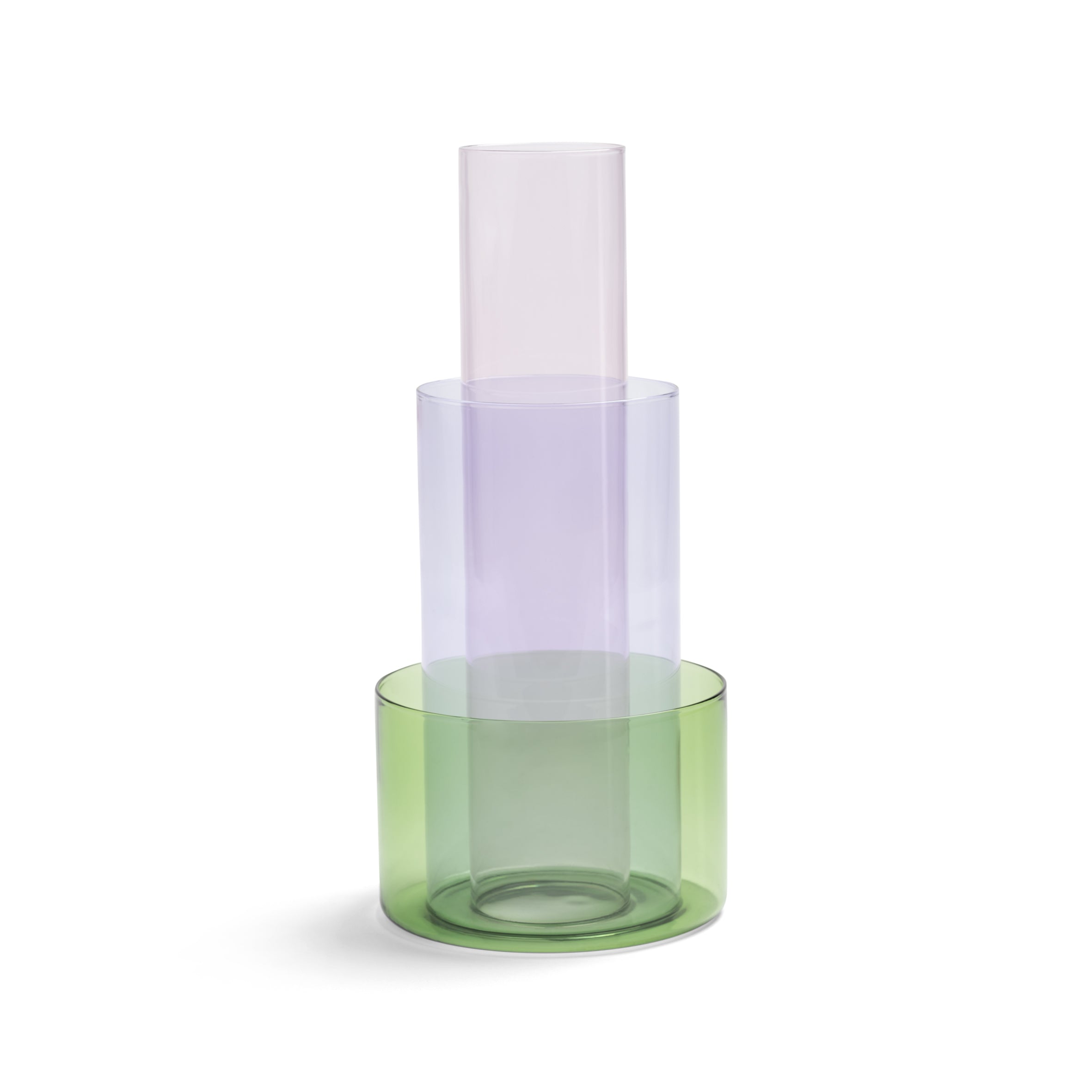 This vase, created by Lex Pott for sublabel Buro Berger, is made to bring happiness with its flexibility for arranging flowers. You can try different stem lengths in its layers to make beautiful arrangements. Adjust the water levels in each part to suit your design. The clear colours are inspired by steps in an amphitheatre, creating lively overlaps and blends that add a cheerful touch, even without flowers.