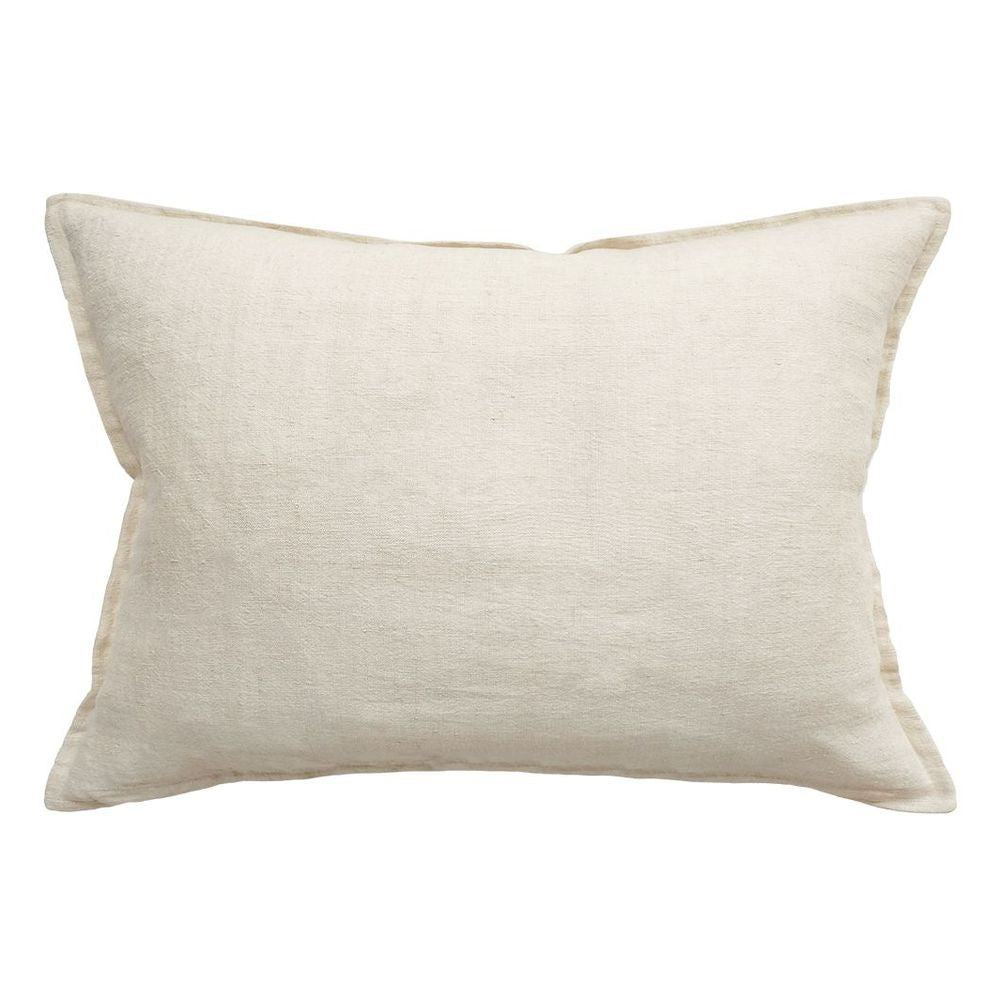 Raw texture is celebrated in stunning natural tones. Handwoven in 100% linen, the Arcadia features a 1cm flange edge, enhancing strength and durability while creating an easy and contemporary aesthetic. The light almond tone and lumbar shape makes this the perfect finishing piece for a pared-back, thoughtfully crafted interior. Style with matching colourway in our Cassia collection to add interest with size and shape.