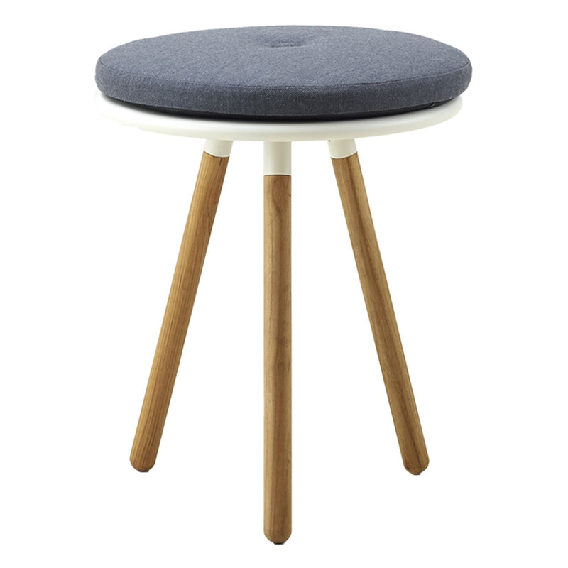 The round Area table/stool in lava-grey or white aluminium also incorporates an exclusive simplicity. Whether used as a table or a stool, the item is exceptionally sturdy due to the gentle curves around the edges and the centre hole which promotes constructional strength. The hole in the table can also provide space for a parasol, as well as the option to attach a seat cushion on the Area stool, or even something simple as directing rainwater away, providing an easy handle for moving the piece of furniture around, or providing it with an aesthetically beautiful additional level of detail.