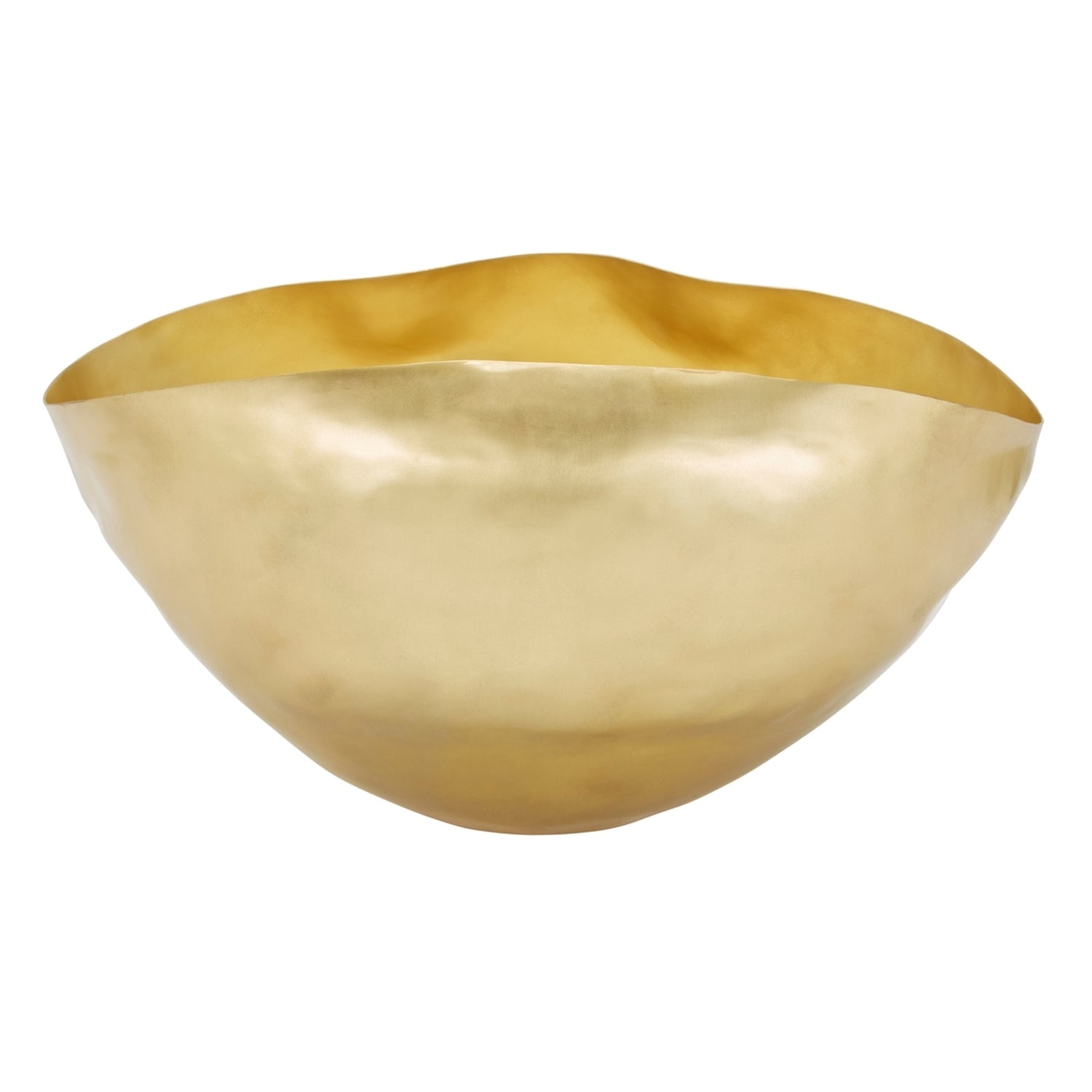 Each unique vessel is formed by hand from a single sheet of brass, finished with a gold wash and a food safe lacquer. These products are handmade and variations may occur from piece to piece.