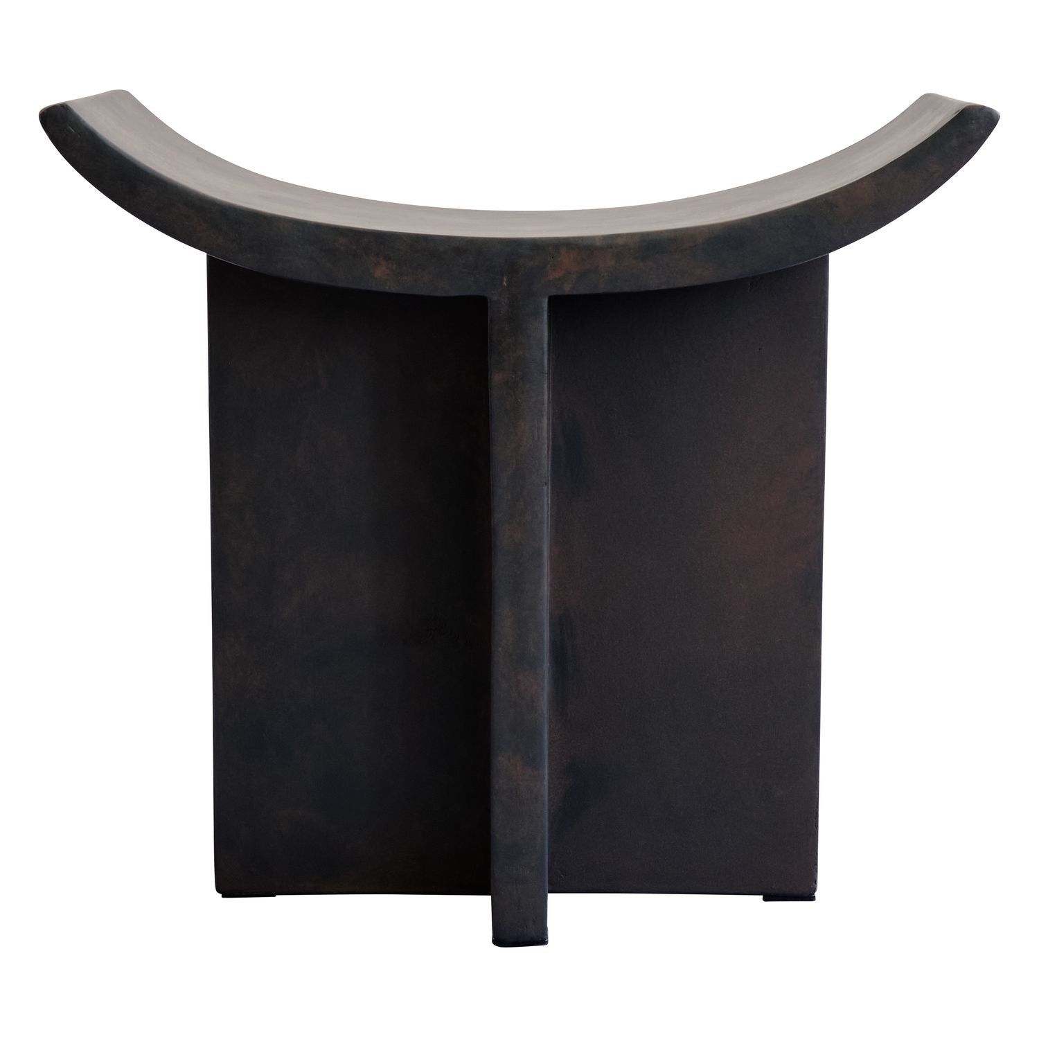 Inspired by the Brutalist architecture movement of the mid-20th century, the Brutus collection comprises a dining chair, a lounge chair, a coffee table, and this stool cast in lightweight fiber concrete creating a unique surface texture increasing mobility. Drawing on traditional Japanese wooden stools, the curved seat and signature cross legs makes for a perfect extra seating around the table. Each piece is hand painted to create a textured, unique surface. Emphasizing the fine balance between sharp architectural lines and a somewhat softer curve in the back and armrest, the Brutus collection is sculptural statement pieces with a compelling seating comfort.