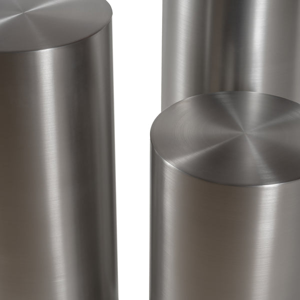 Soft curves meet solid presence in the Ciro Pedestal — a circular statement piece crafted from brushed stainless steel. With its seamless round top and column base, Ciro brings a sculptural quality to any interior. Use it to elevate floral arrangements, art pieces, or as a standalone form that adds quiet sophistication to your space. Timeless, bold, and beautifully balanced.