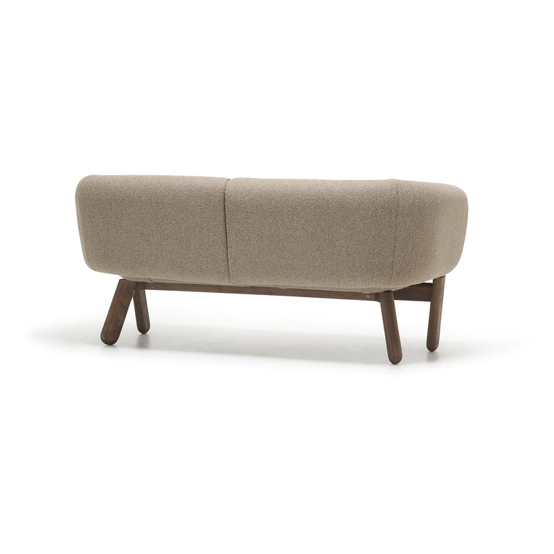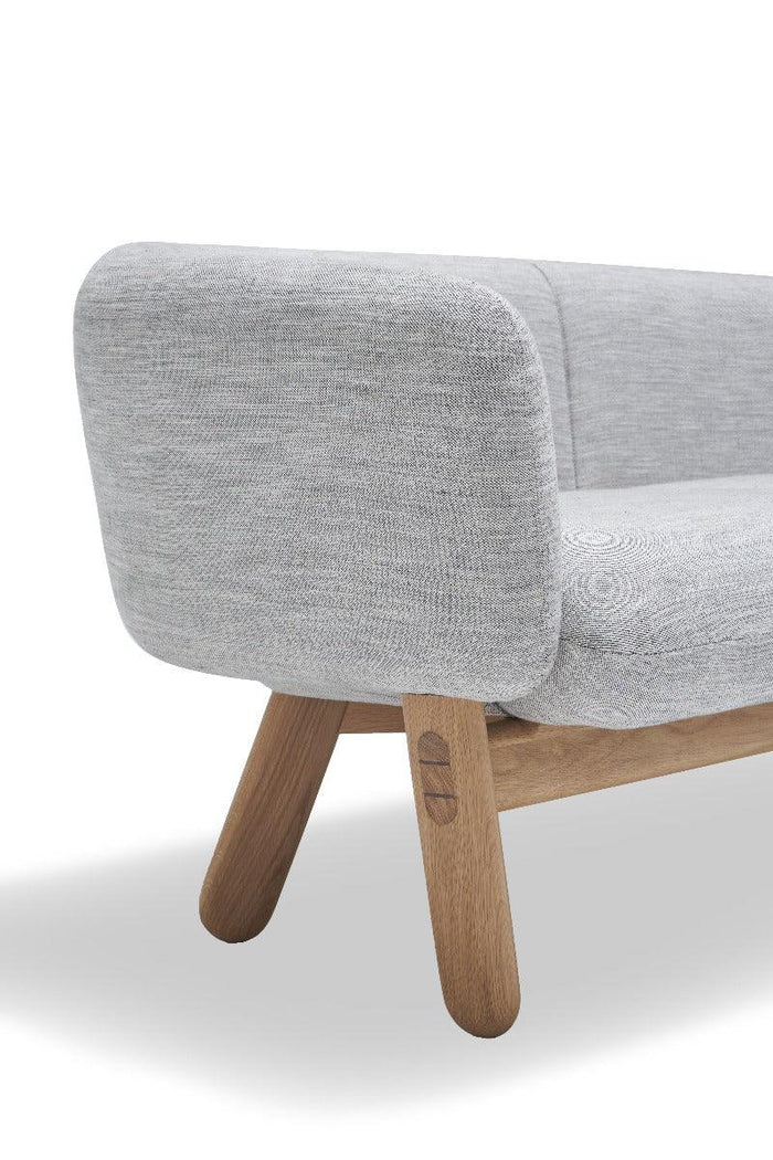 Designer Rui Alves intended the Copal family to be generous and inviting, like a good host. The sofa offers a warm embrace, with a back that curves gently into the arms. The rounded oak legs create a play of angles at the base, and are characterised by a “through wedged tenon” joint, revealing expert craftsmanship. A warm embrace, with a back that curves gently into the arms.