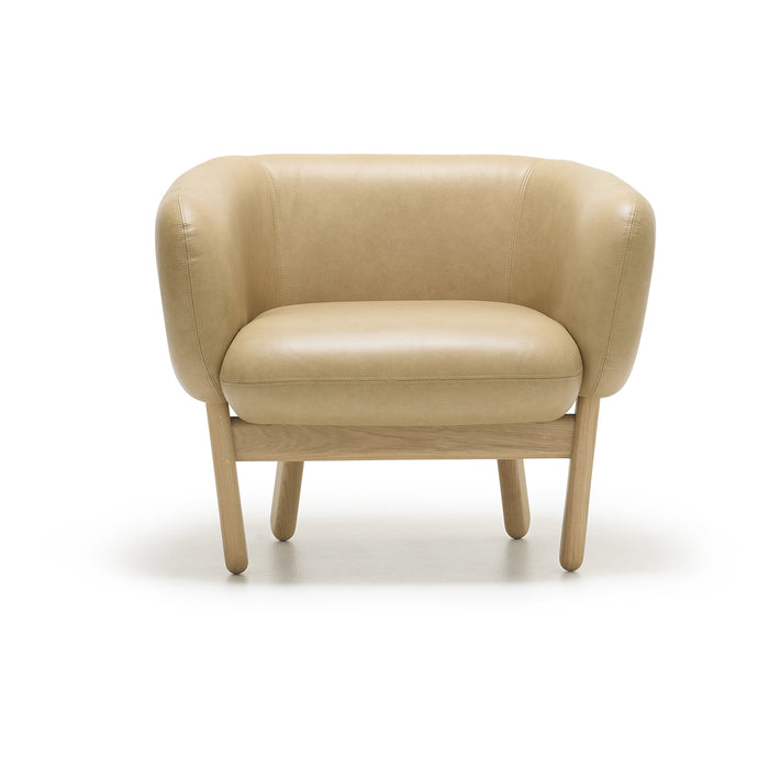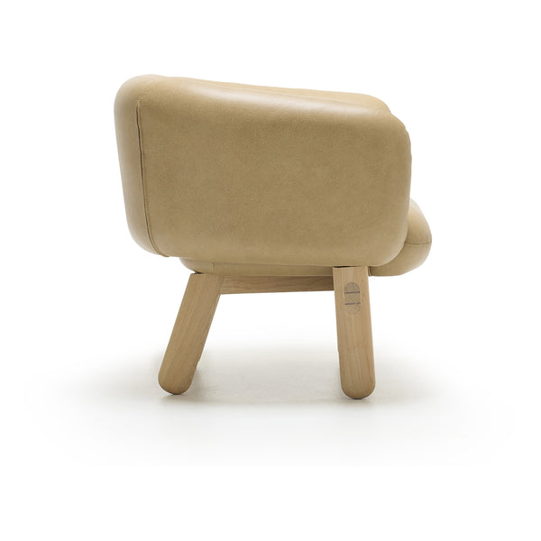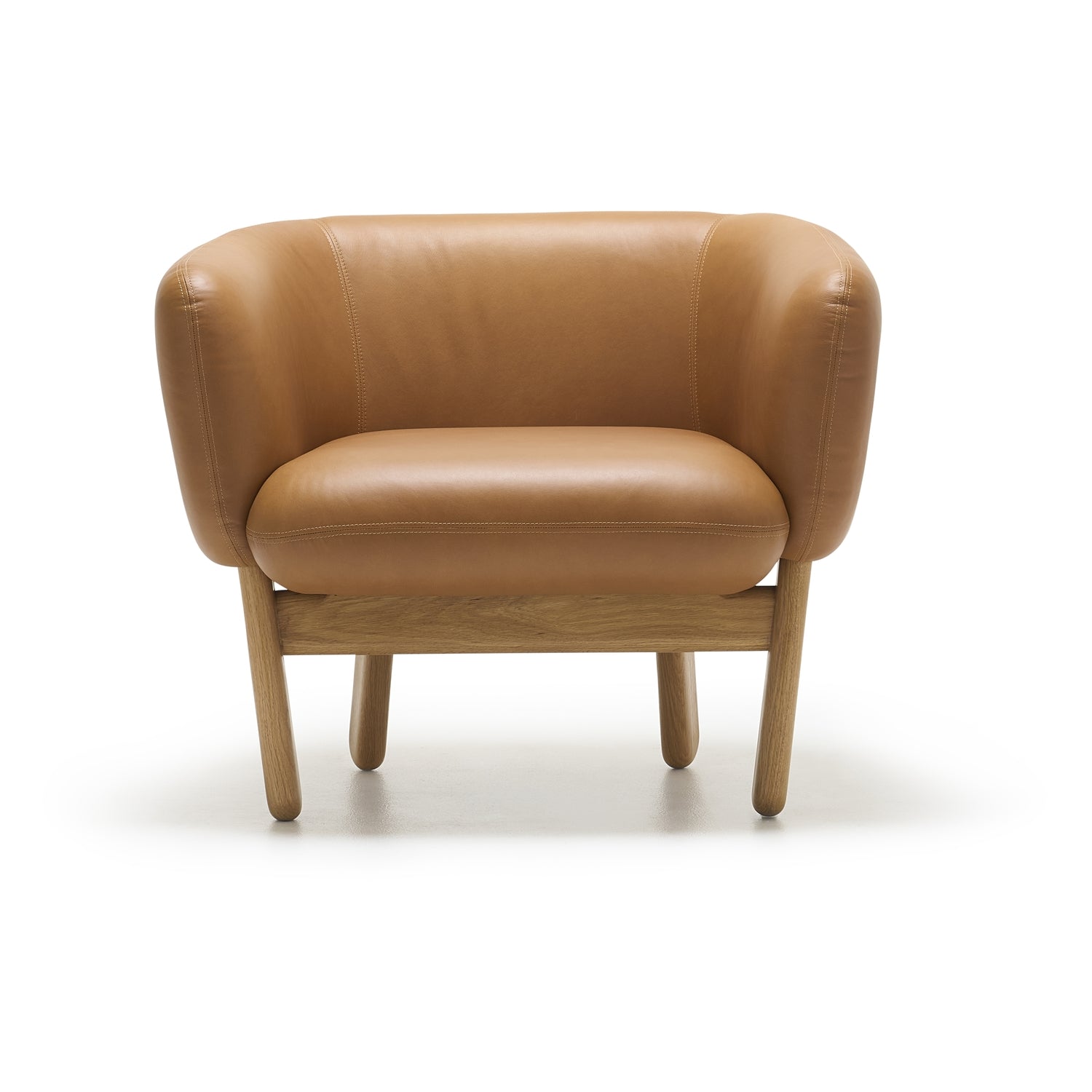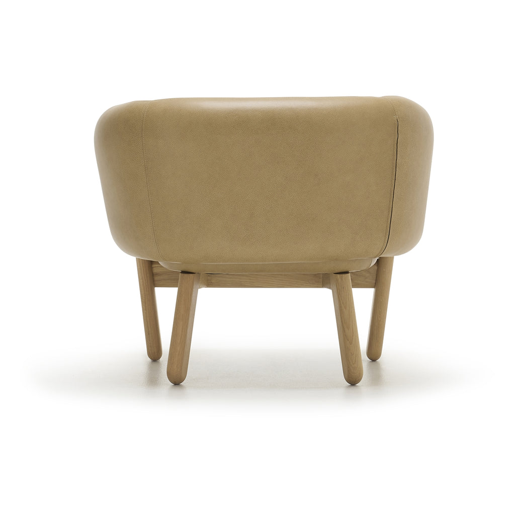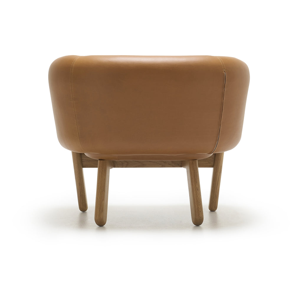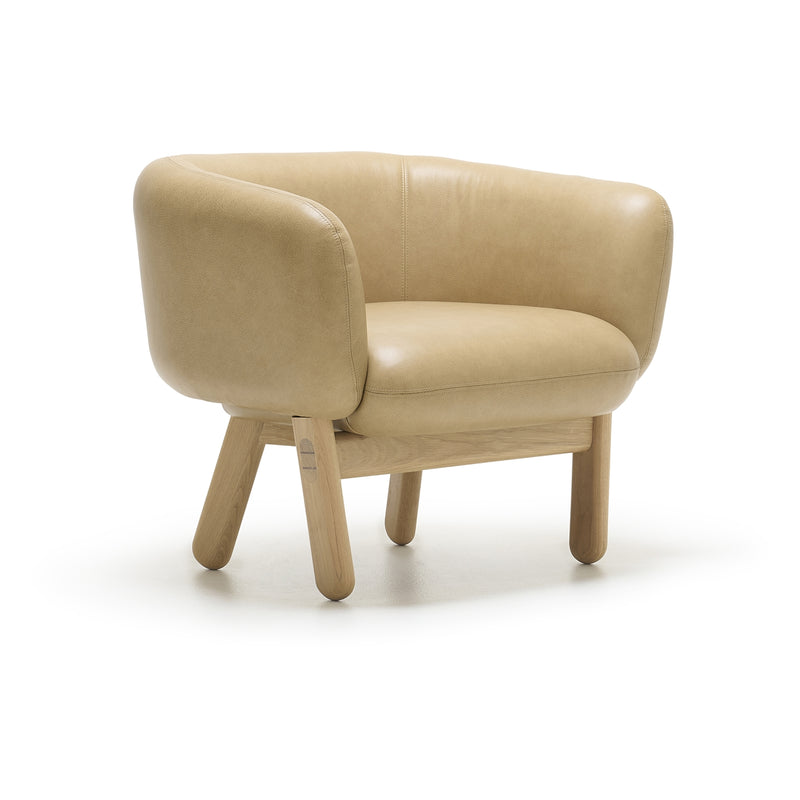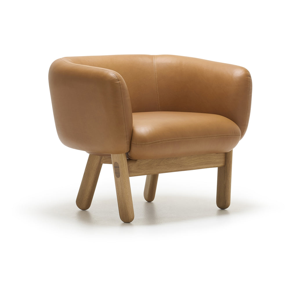Designer Rui Alves intended the Copal family to be generous and inviting, like a good host. The sofa offers a warm embrace, with a back that curves gently into the arms. The rounded oak legs create a play of angles at the base, and are characterised by a “through wedged tenon” joint, revealing expert craftsmanship. A warm embrace, with a back that curves gently into the arms.
