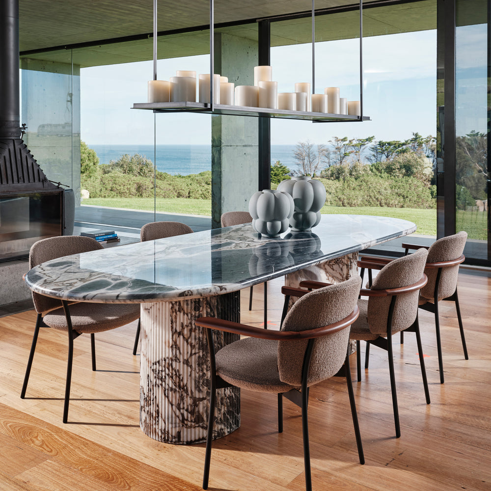 Crafted with luxurious marble, the Crescent Dining Table is the epitome of elegance. Its stunning design adds a touch of luxury to any dining room, making every meal feel like a special occasion. Elevate your dining experience with this beautiful and sophisticated table.