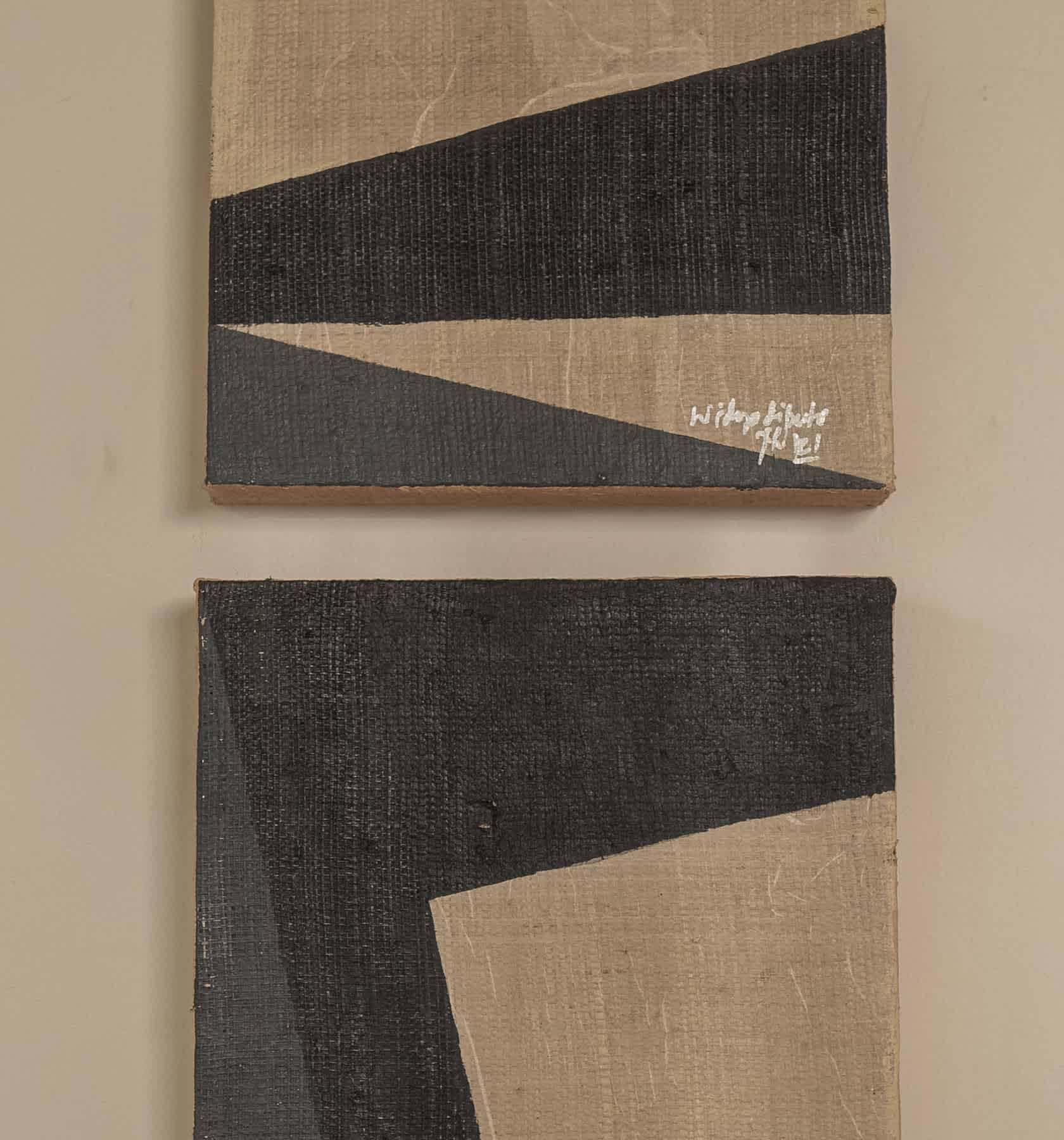 A stunning diptych artwork by Balinese Artist I Made Widya Diputra (Lampung). Utilising the recycled natural materials of hessian and jute and natural colourings. At once superbly eye-catching, the ‘Entreaties’ work, creates positive energy and discussion in any space.