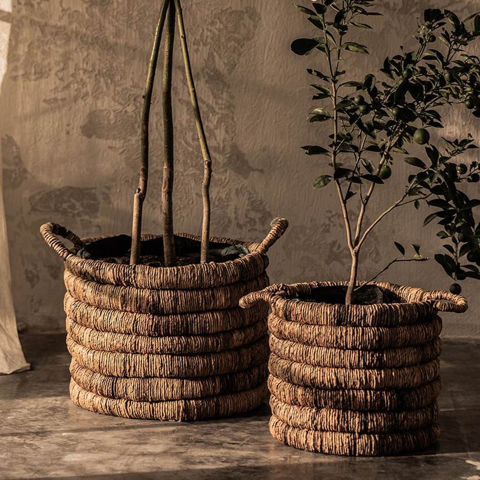 Bring nature inside your home with this beautiful Sago Basket set. The round basket is entirely hand-braided by local craftsmen and made from the durable abaca fiber, known for its exceptional strength and flexibility. With its natural expression and timeless design, the versatile basket fits easily into many interiors.