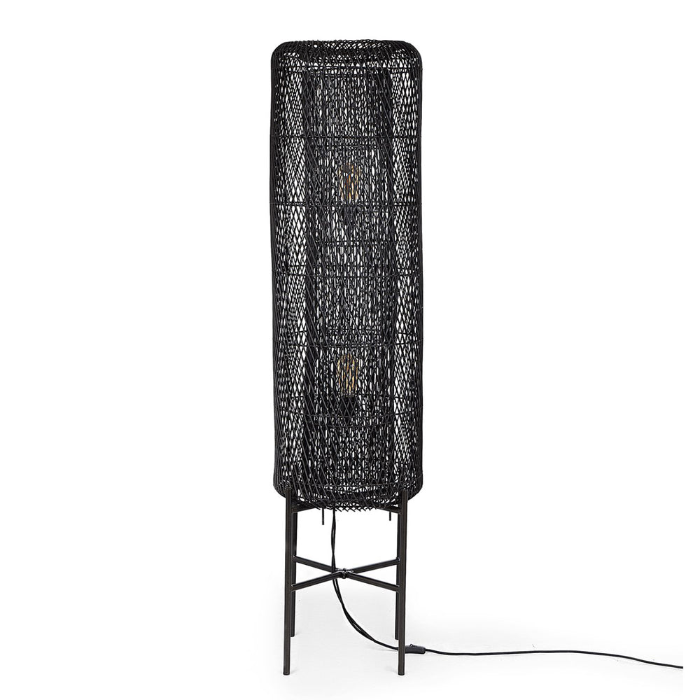 Meet the Chunk Floor Lamp: An organic-shaped lamp crafted from durable rattan, handwoven in a beautiful mesh structure. With its long, rectangular body, the Chuck makes an impressive statement piece that is still humble in appearance due to its fine, open structure and gracious lines.