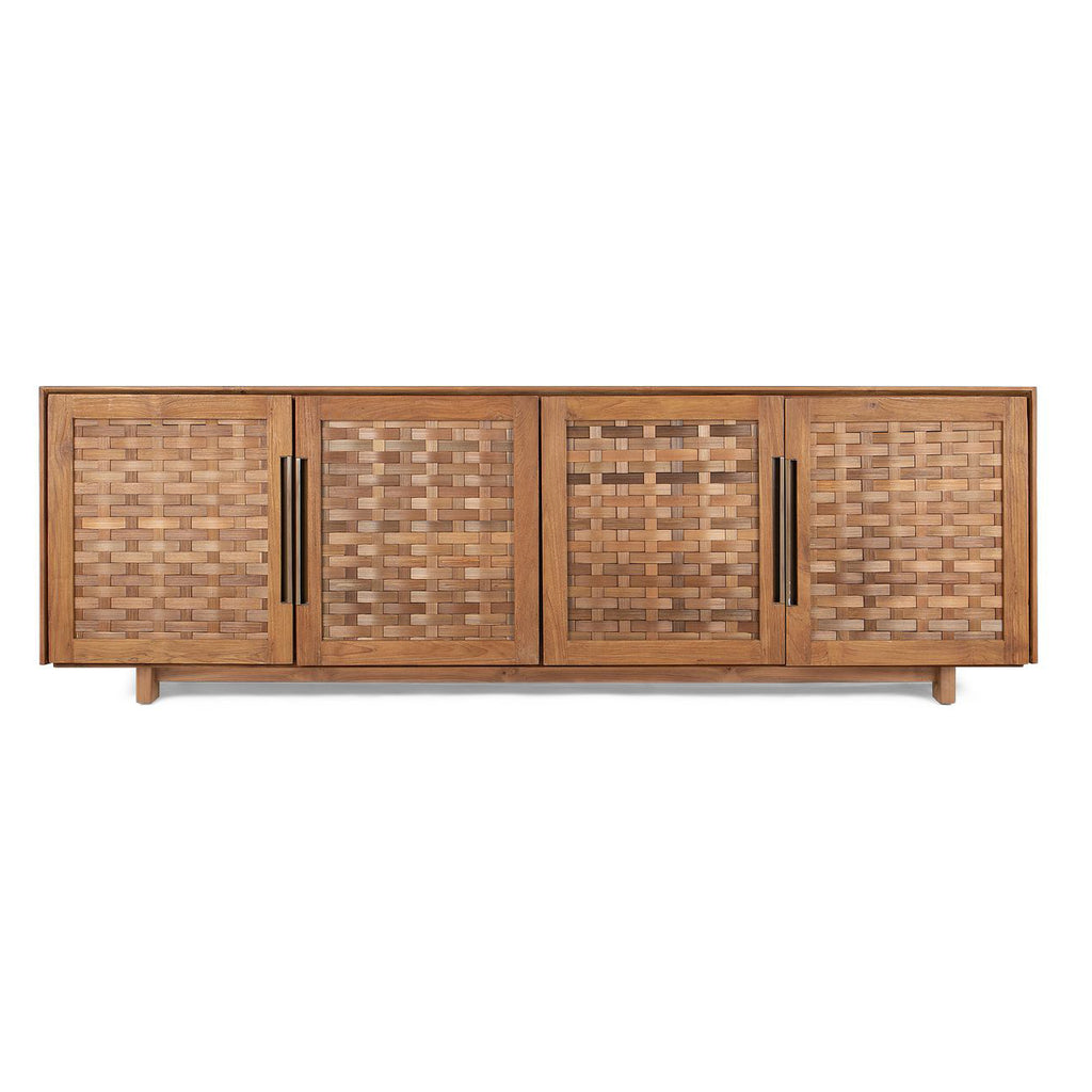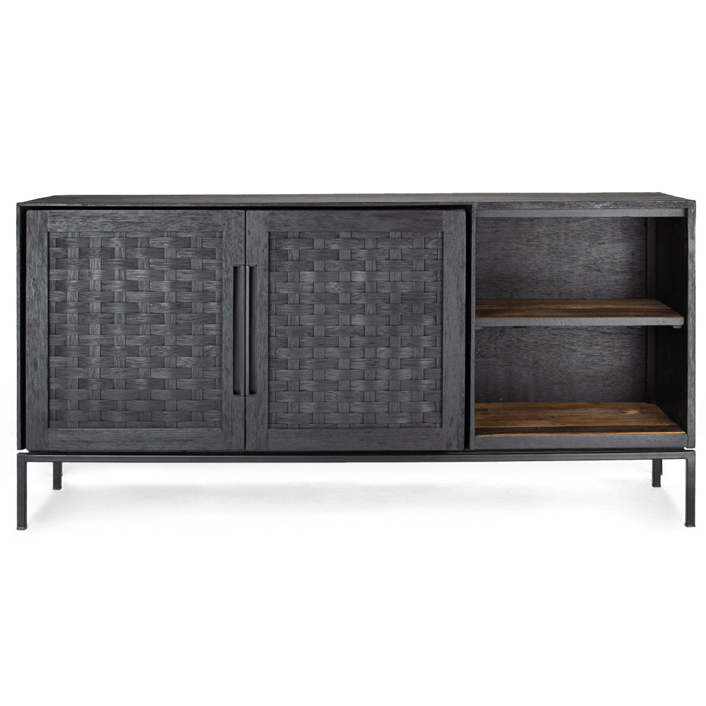 For this stylish cabinet various craftsmanship techniques are used. It is handcrafted from reclaimed wood, has a cool iron frame, and doors of sustainable, handwoven rattan, treated with an eco-friendly matte black finish. With its closed doors, the Karma Cabinet is not only stylish, but also ideal for storing your cherished belongings.