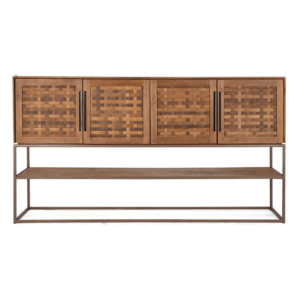 The Karma Pure High Dresser is handcrafted from reclaimed teak and iron and has an elegant, vintage look. The four beautifully textured reclaimed teak doors hide eight removable inside shelves for easy storage, while the bottom rack is perfect for displaying your favorite books or knick-knacks. The iron frame comes in a matte messing finish.