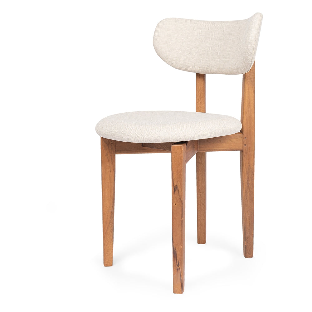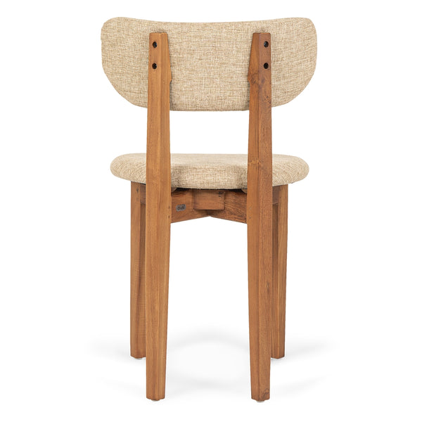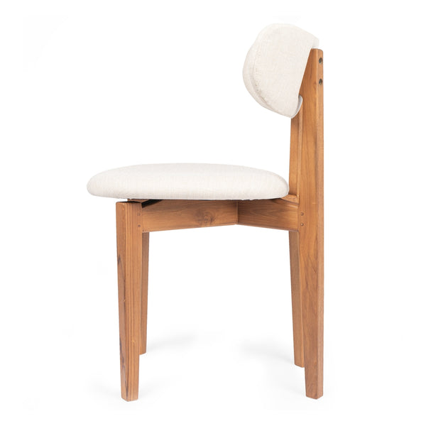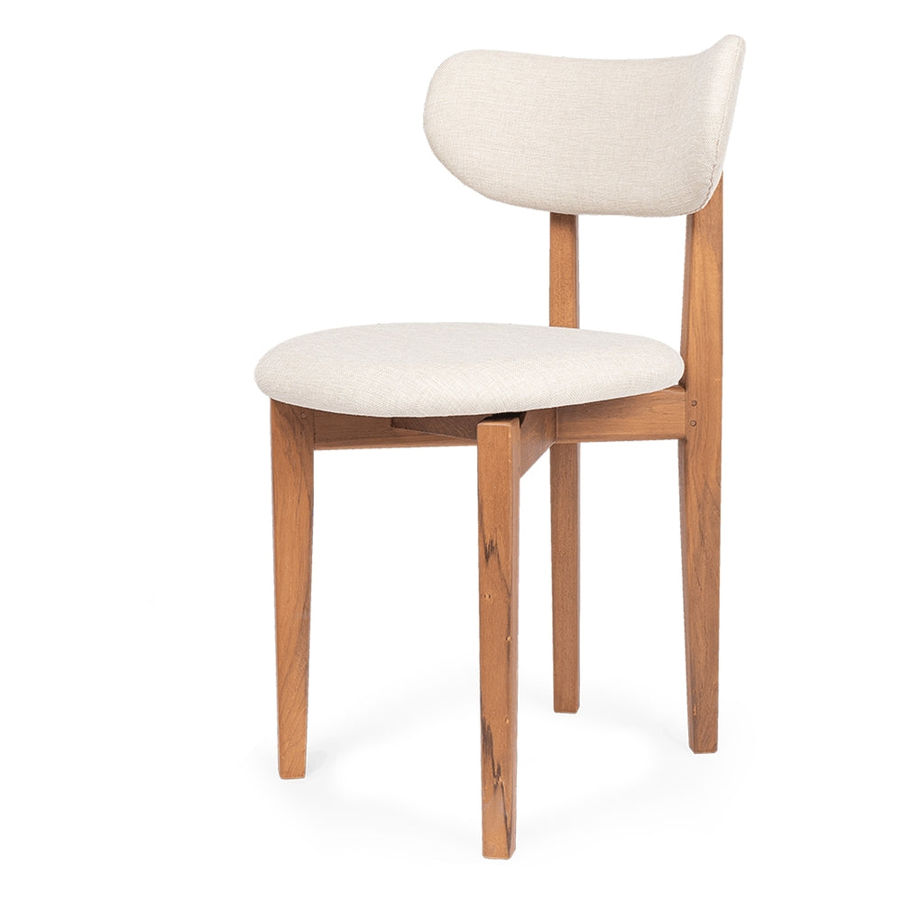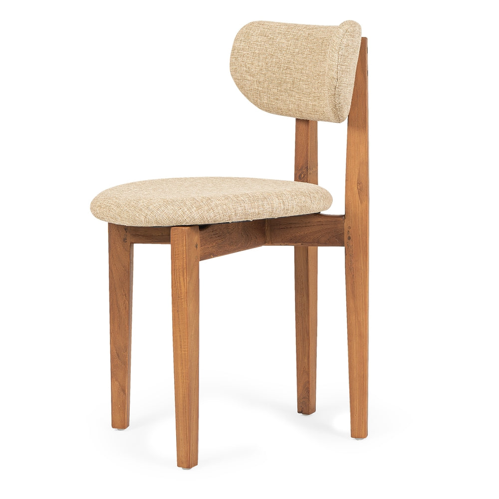 The Mila dining chair combines a modern, contemporary aesthetic with simple functionality. The frame is made from reclaimed teak, carefully reused to retain its natural beauty and character. The seat and backrest are also made from this sustainable wood, creating a warm and authentic look through fabric.