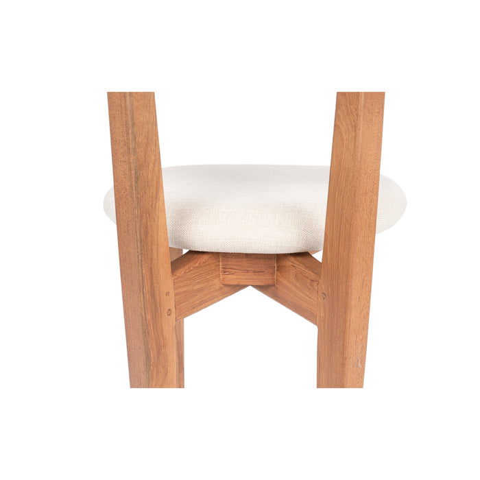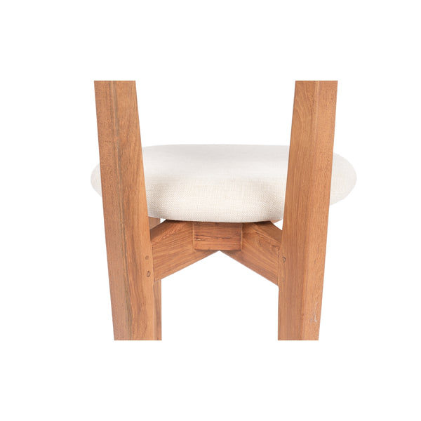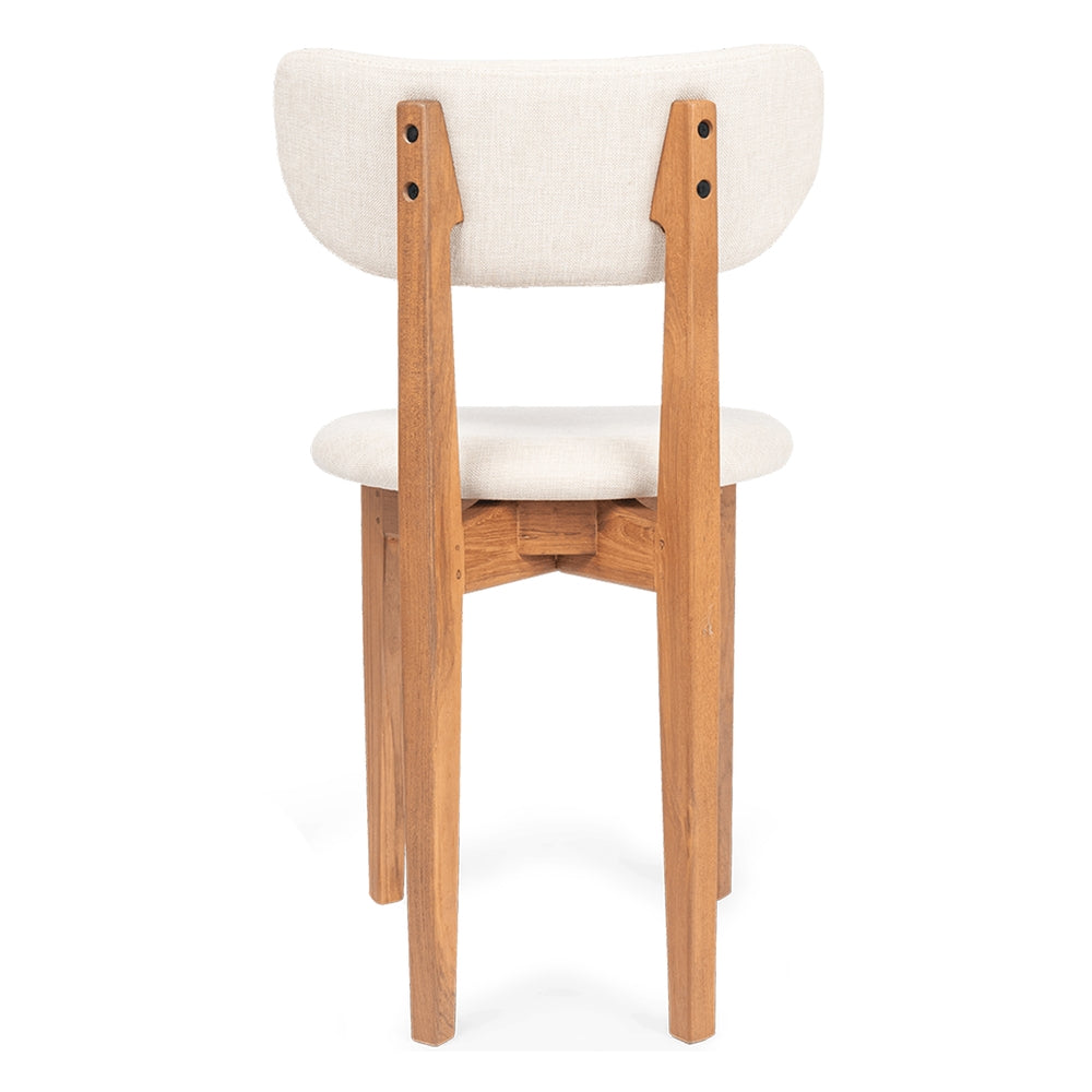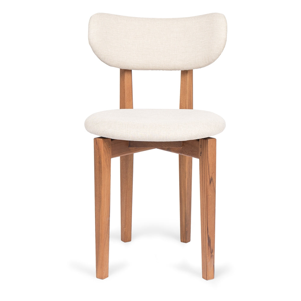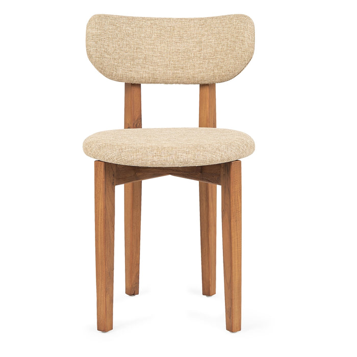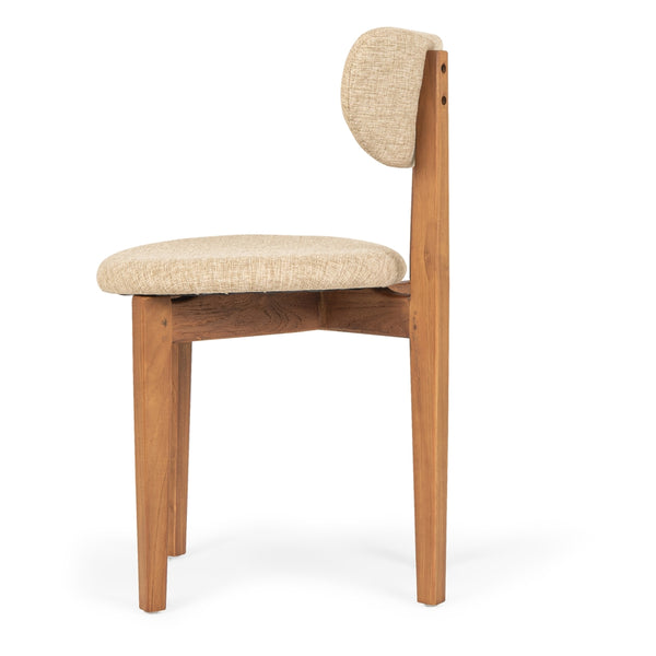 The Mila dining chair combines a modern, contemporary aesthetic with simple functionality. The frame is made from reclaimed teak, carefully reused to retain its natural beauty and character. The seat and backrest are also made from this sustainable wood, creating a warm and authentic look through fabric.