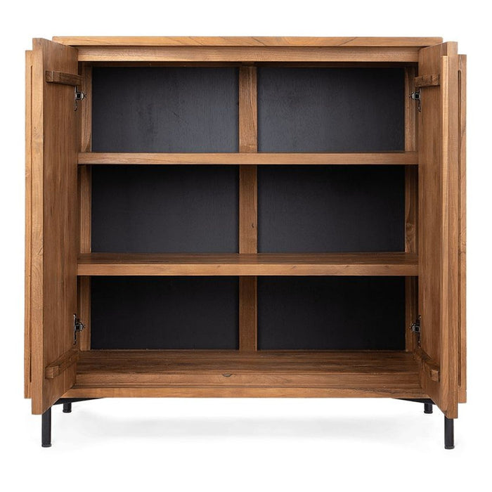The Outline Dresser with two doors is a modern sideboard with a simple and clean design that’s easy to match with any interior style. The dresser is handcrafted from reclaimed teak wood and features minimalistic designed iron legs. Behind the two doors are two big, removable shelves for all your storage needs.