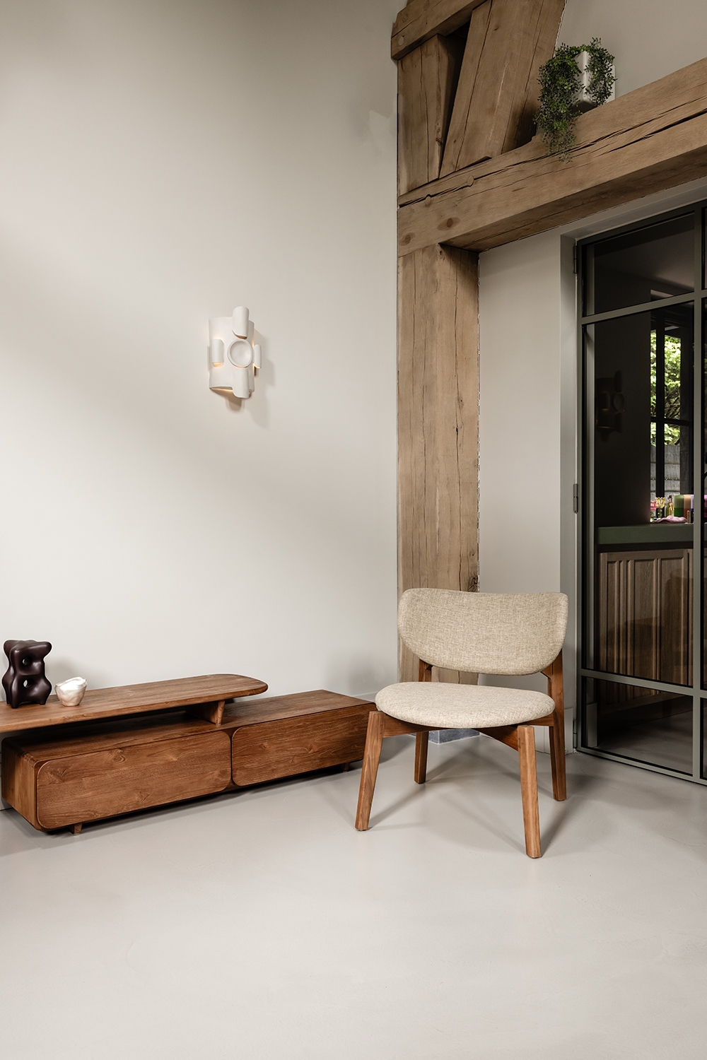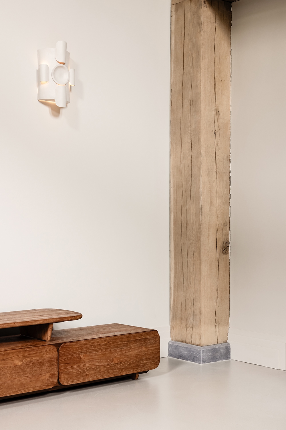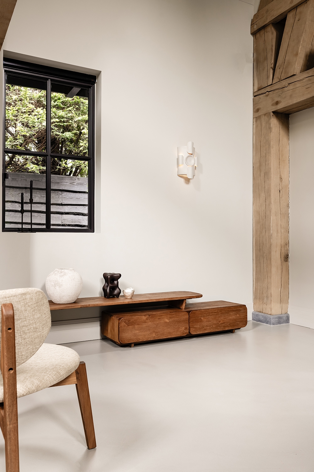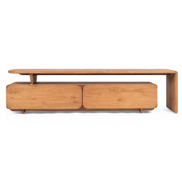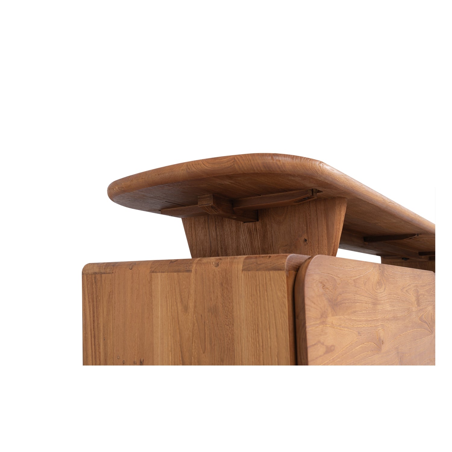 The extendable sideboard from the Tess collection is crafted from reclaimed teak wood and available in three sizes. The rounded top section rests on a double drawer module equipped with a soft-close system. Designed to adapt to any space, this sideboard is a true eye-catcher with a modern-retro appeal.
