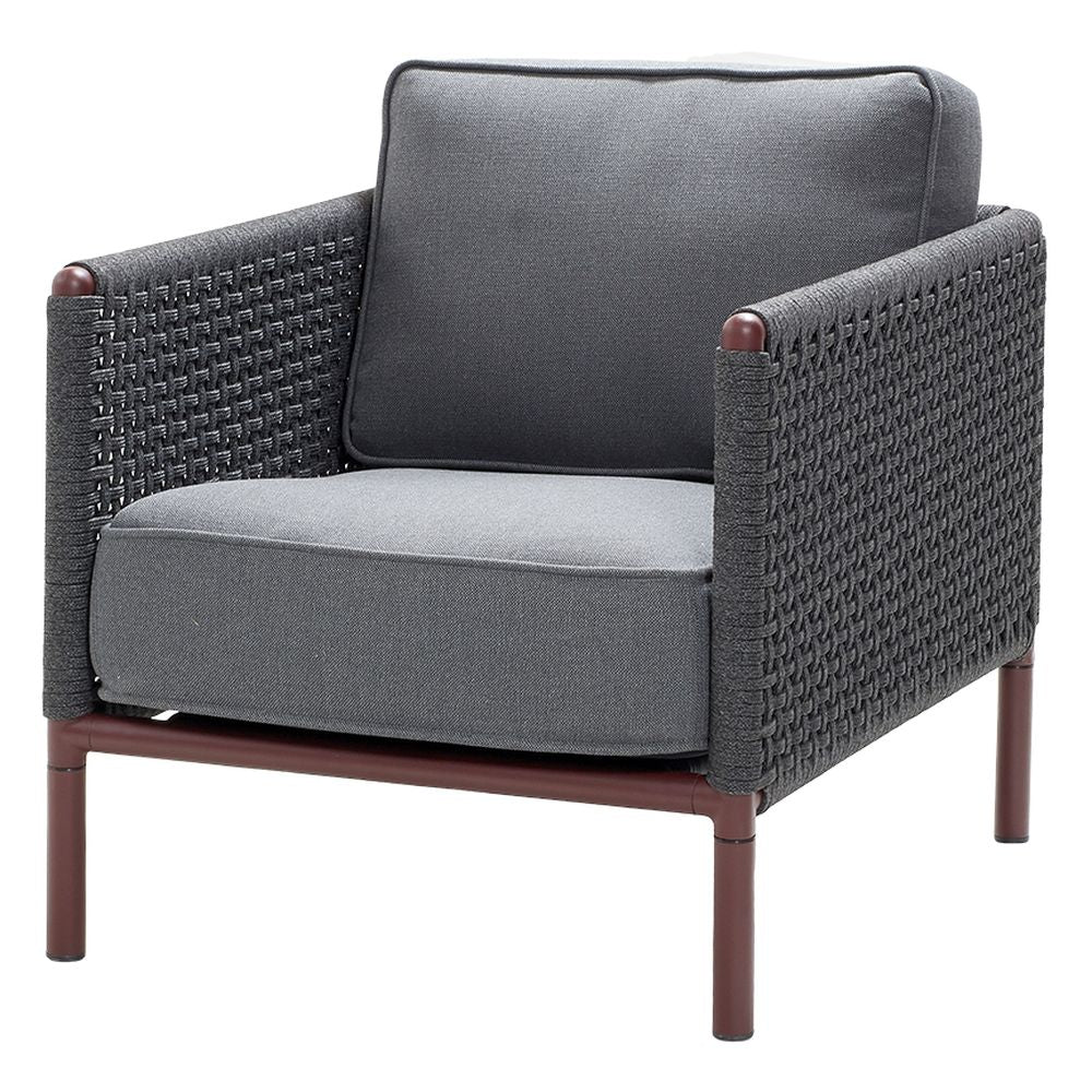 Encore lounge chair is a modern twist on a classic design in elegant weave, which fits most outdoor environments with its timeless expression. Encore is manufactured with Cane-line Soft Rope and Cane-line AirTouch cushions with QuickDryFoam®. Cane-line QuickDry & Airflow system is a special technique that increases the comfort of the furniture. About one hour after a rainfall, the cushions are dry again and ready to use.