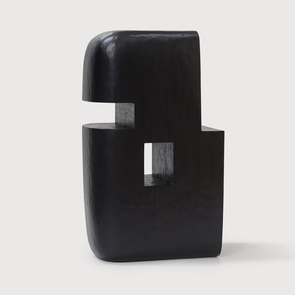 Handcrafted wood sculpture. Lucien Petit's work develops an interest in architecture, structured by the binary opposites of full and empty, form and counter-form, elevation and collapse, convex and concave.