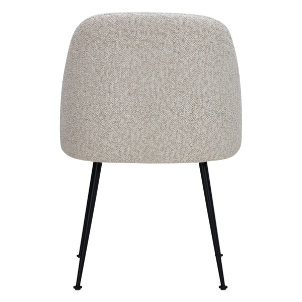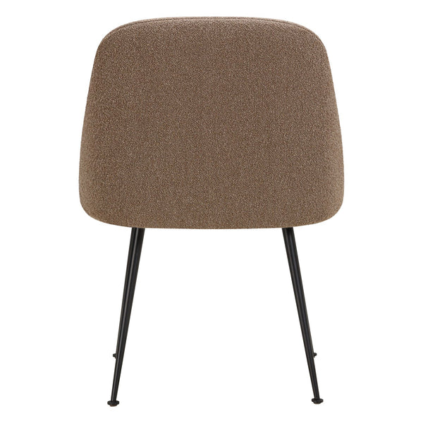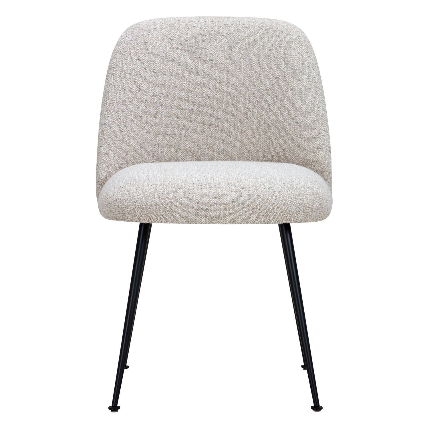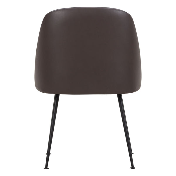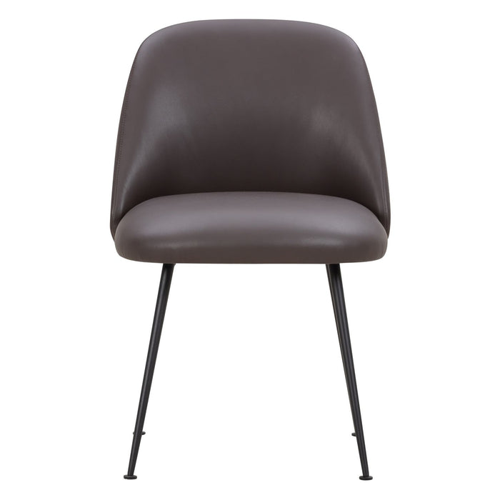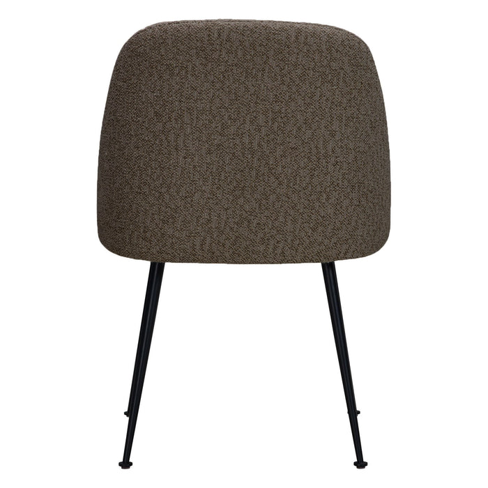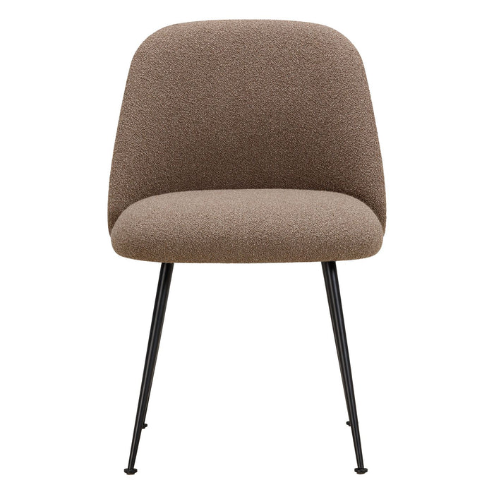 The chair is offered with legs in black powder-coated steel as well as brown and black stained oak. The outer sides of the oak legs are rounded, whilst the inner part is plane and meets the wooden seat frame in an elegant curve. With an almost invisible transition between the upholstered seat and the legs, the steel version adds a more graphic character to the design, further accentuated by its slim and tapered profile.