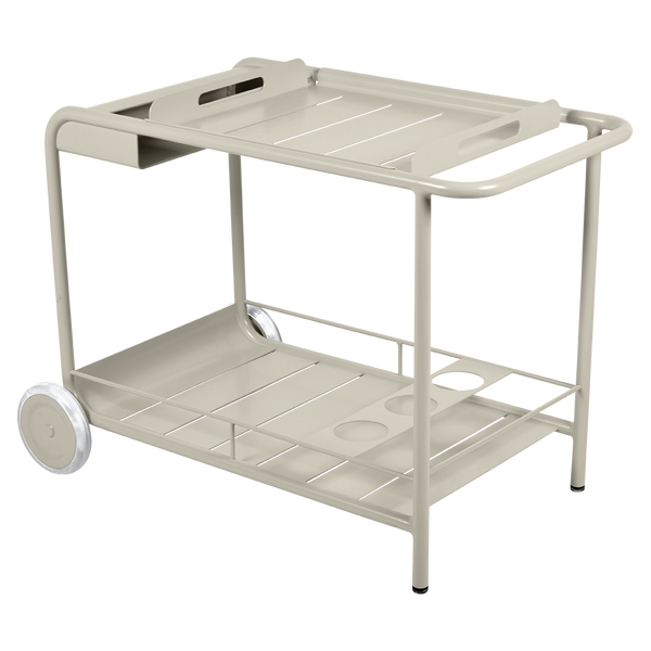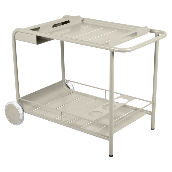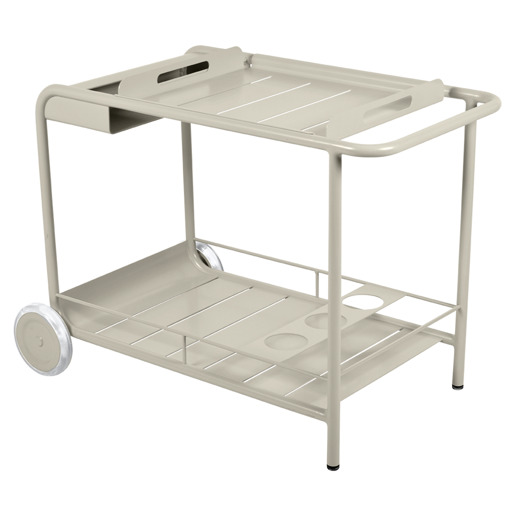 This trolley bar, complete with removable tray, is ideal for serving guests and, thanks to its wheels, will follow you everywhere! Its welcoming presence makes for a fantastic option to have in your backyard, and its versatility and mobility is unmatched. Easy to transport and use, the Luxembourg Side Bar/Trolley makes for an ultimate utility piece to have in your home.