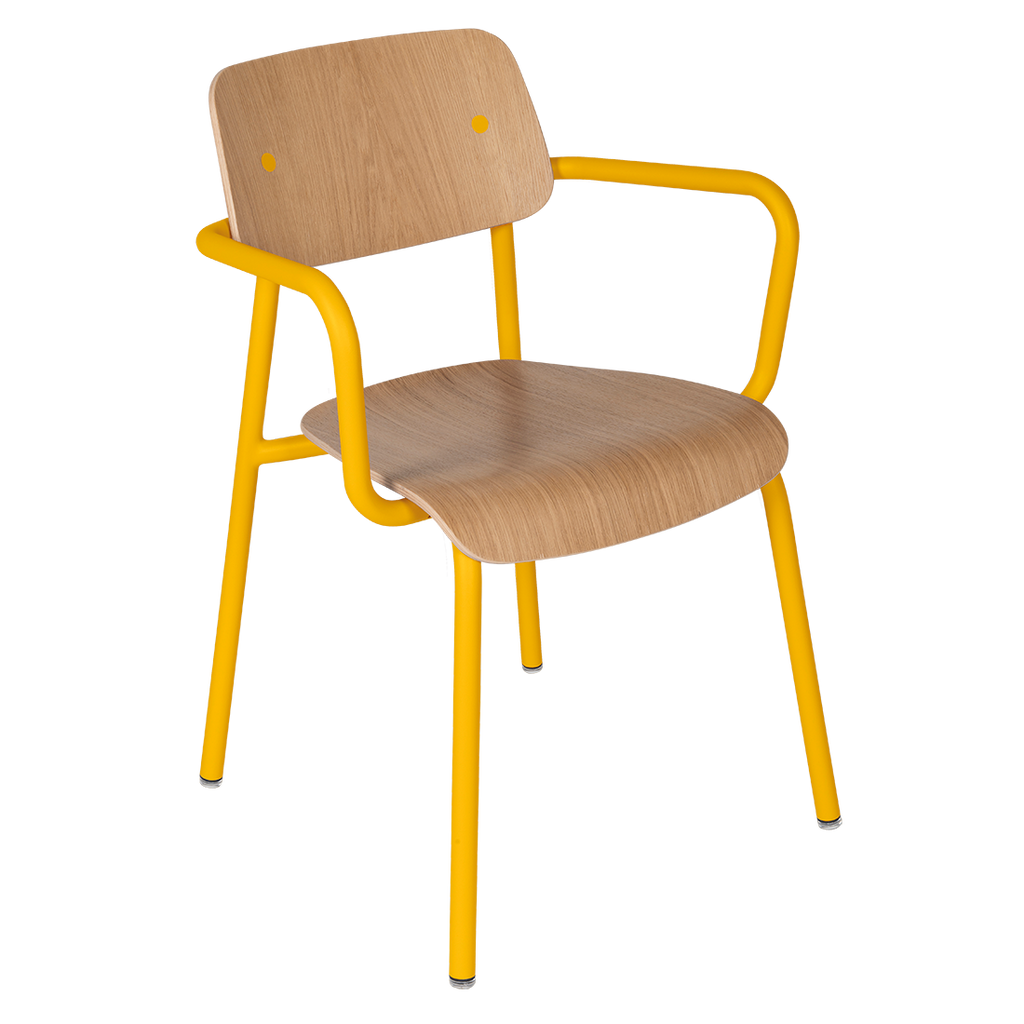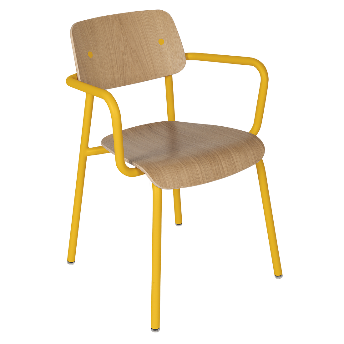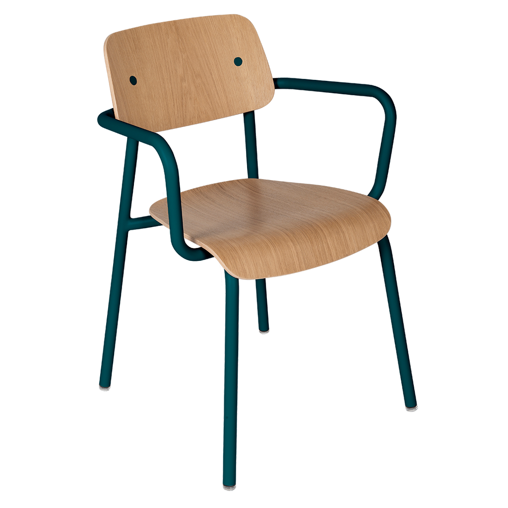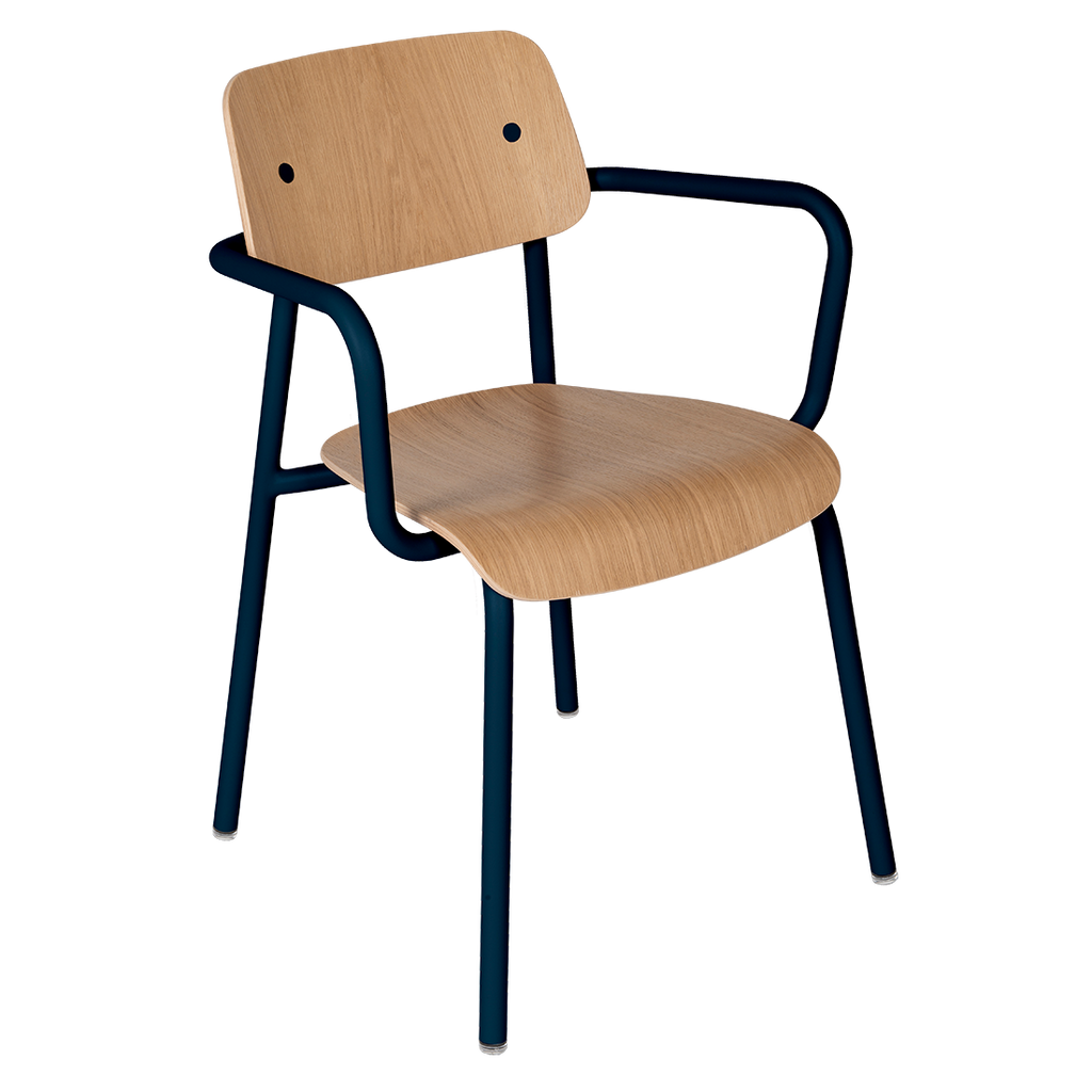 The Studie collection is brought to us by Tristan Lohner, a designer with whom Fermob has a long-standing partnership, and who is also behind the design of the Mooon! and Balad lamps, as well as the Bebop low tables. He revamps the design of the traditional school chair that, also creating an armchair. The aptly-named “Studie” collection seeks to awaken nostalgic feelings of childhood. Its refined and contemporary style is perfectly suited for all your indoor and outdoor spaces. Built entirely in aluminium, the collection is remarkably light, very easy to move and conveniently stored: your Studie chairs and armchairs are stackable. Simply put, it’s a practical easy-to-use range. And thanks to its curved seats and backrests that fit the shape of your body, enjoy the utmost comfort. Why wait longer? Enjoy this collection on your balcony or terrace as of today! And why not in your kitchen and dining room... Its refined and contemporary style is the perfect fit!