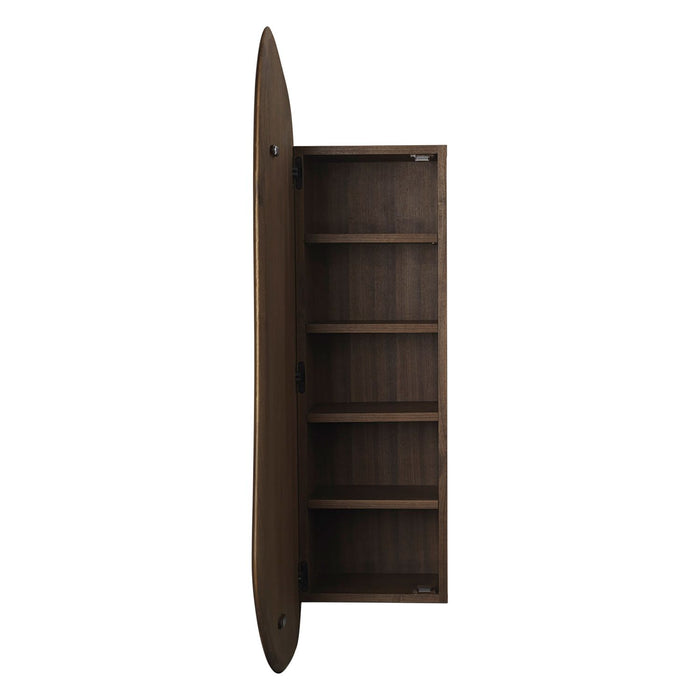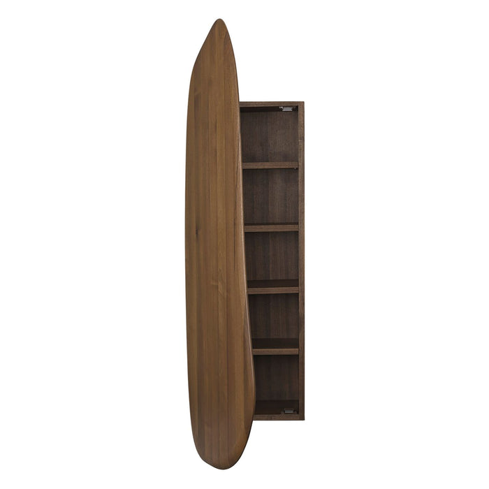 Made from solid FSC™ certified European Walnut, the Feve Wall Cabinet has an organic and warm expression that will suit any space. As a reference to the distinctive shape of the cabinet door, which appears to be floating when hung on the wall, the Feve Wall Cabinet gets its name from the French word for bean. The slim, decorative cabinet presents an ideal storage solution for precious treasures and can be used throughout the home, from storing jewellery in the bedroom to glasses or small bowls in the dining room.