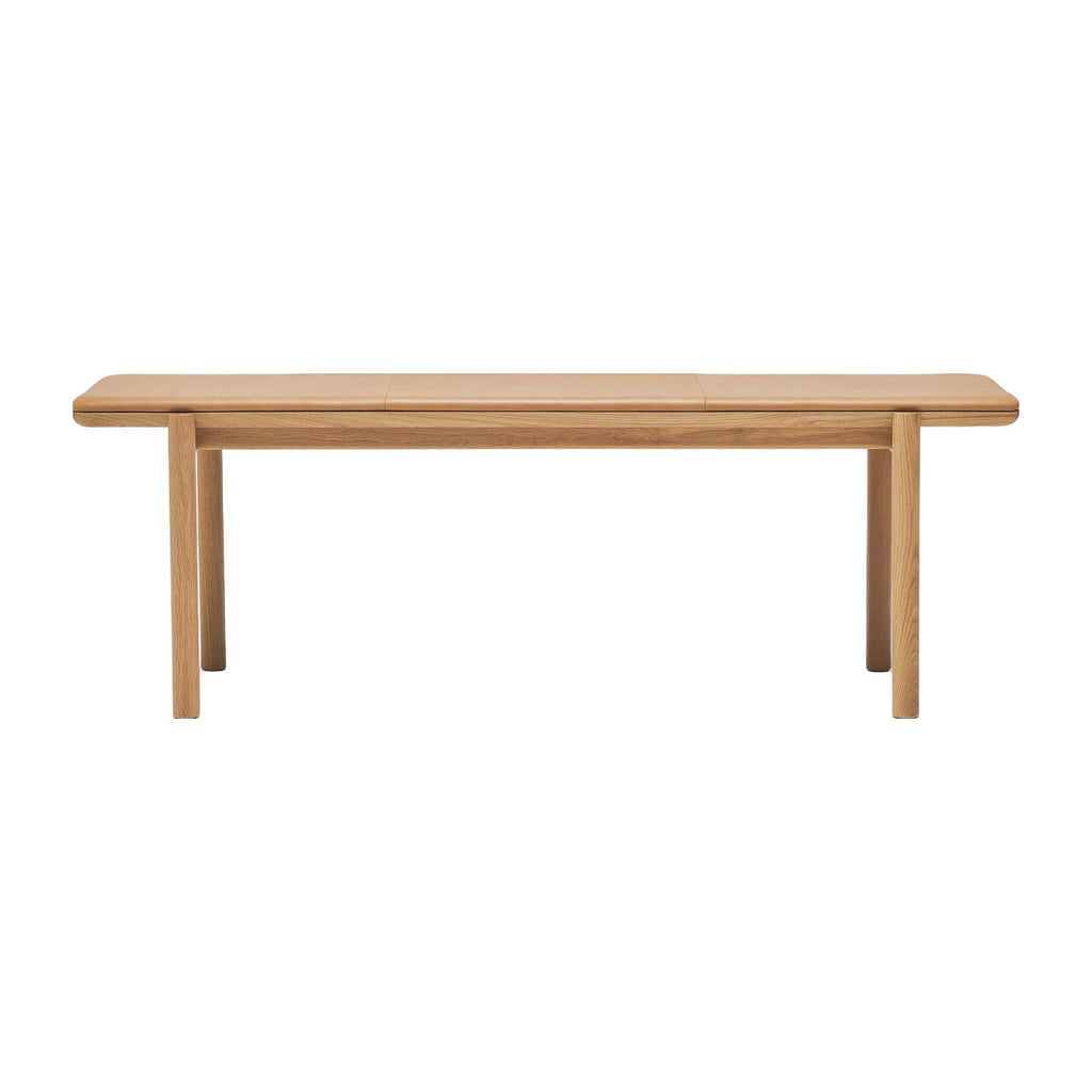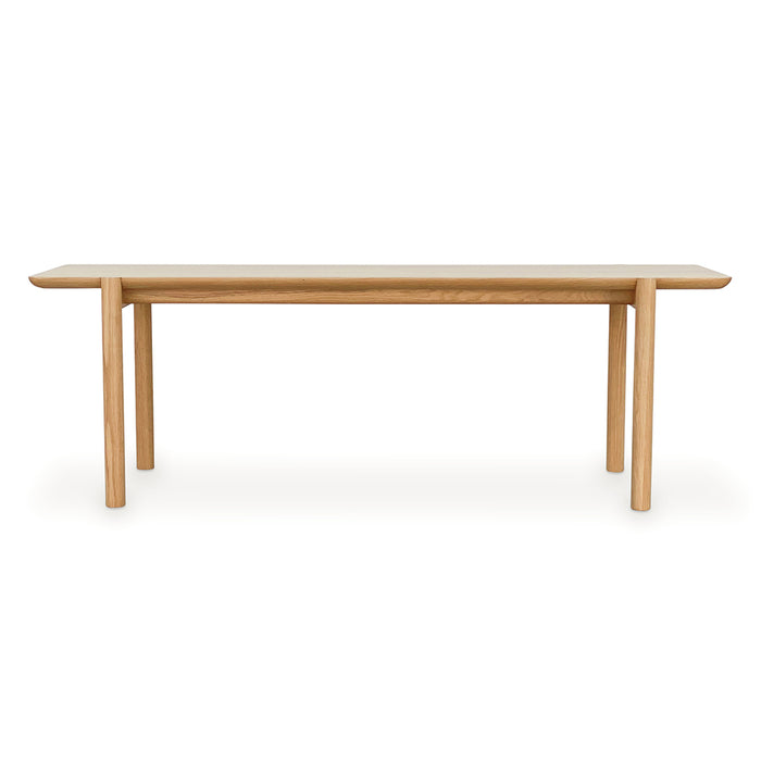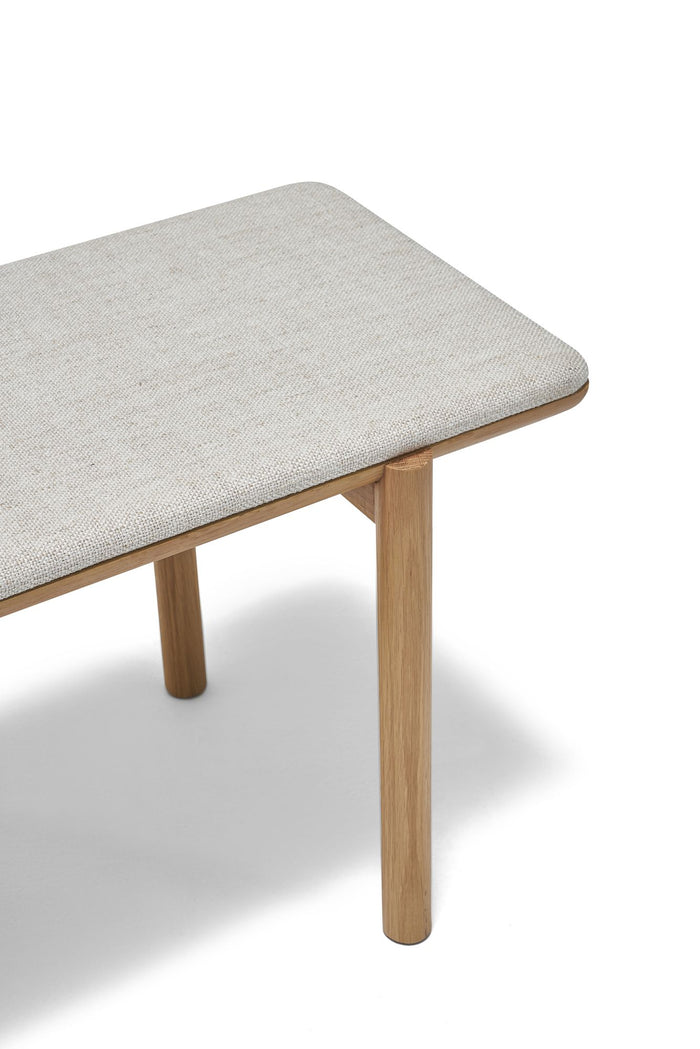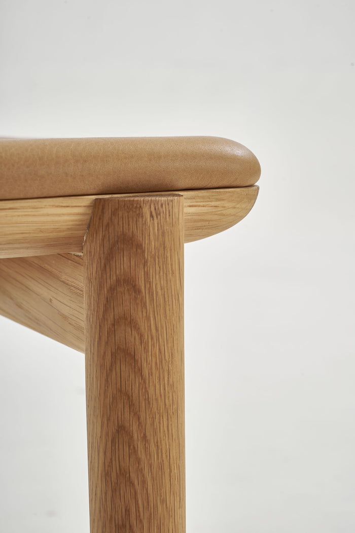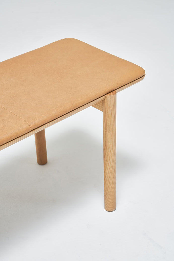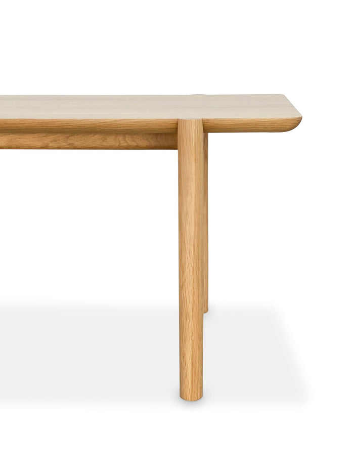 The Folk bench is a study in how to create a design which pleases the eye without resorting to superfluous decoration. The simple intersection of basic geometric shapes results in interesting and alluring forms while at the same time adhering to the less-is-more principle, and allowing the materials to shine. The clean and uncluttered look allows the Folk bench to combine easily with various dining tables, or to stand alone as a bedroom or hallway piece.