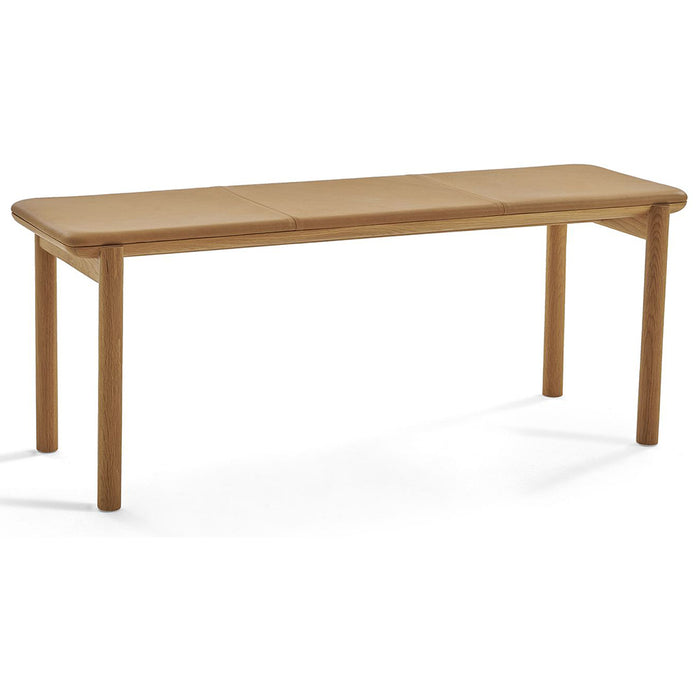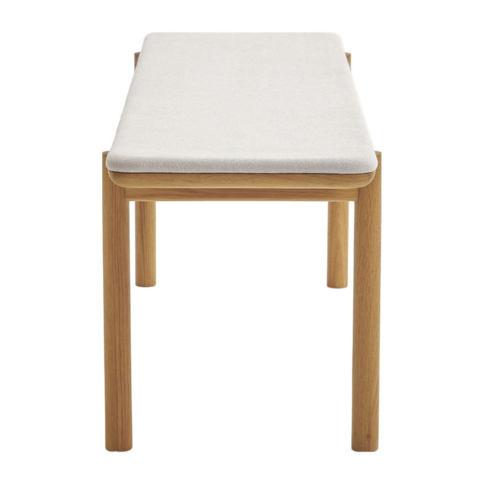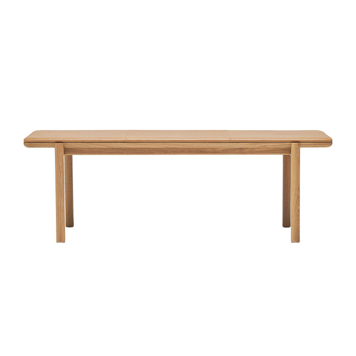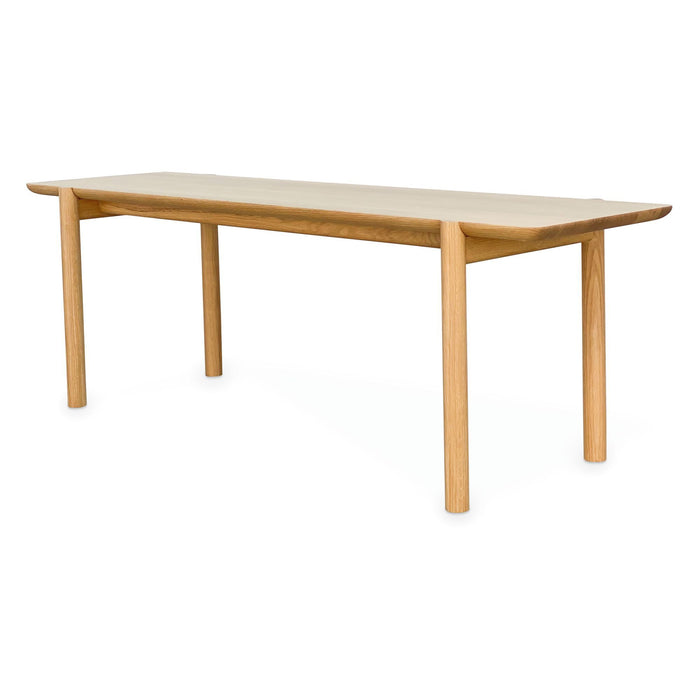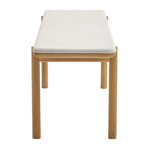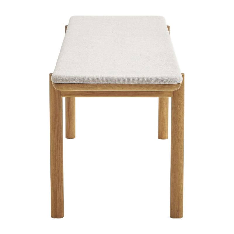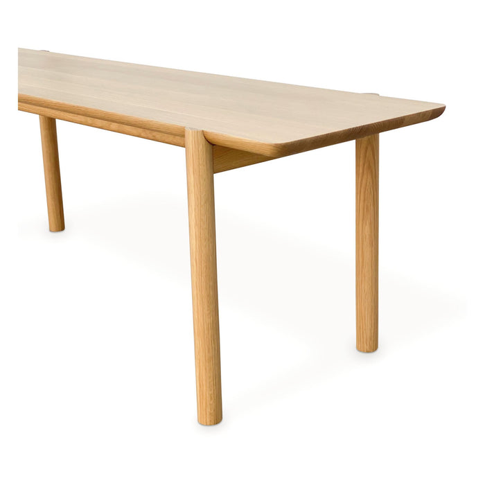 The Folk bench is a study in how to create a design which pleases the eye without resorting to superfluous decoration. The simple intersection of basic geometric shapes results in interesting and alluring forms while at the same time adhering to the less-is-more principle, and allowing the materials to shine. The clean and uncluttered look allows the Folk bench to combine easily with various dining tables, or to stand alone as a bedroom or hallway piece.