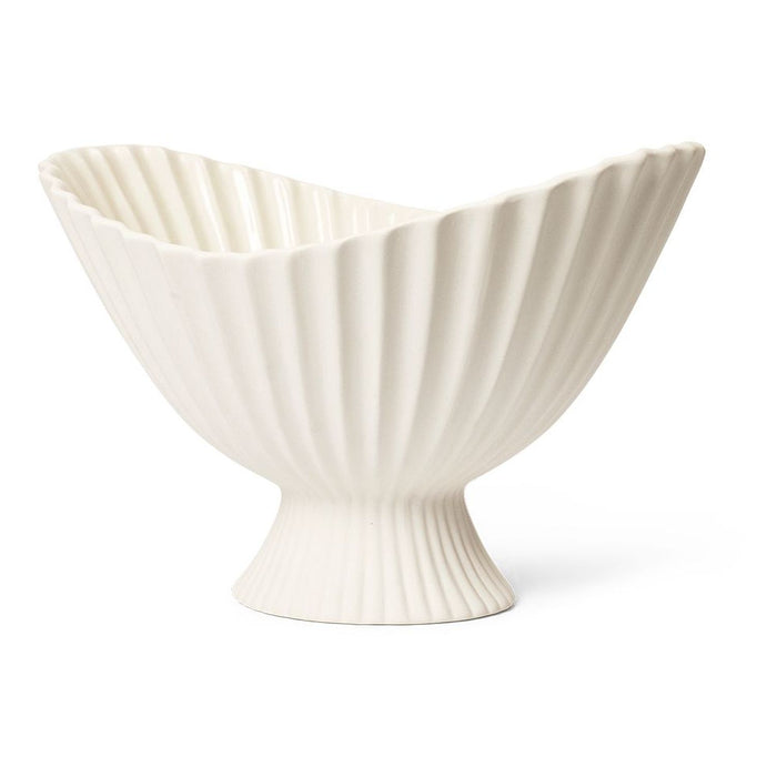 Instantly drawing attention, the sculptural, ceramic Fountain Bowl is an elevated bowl with a soft, pleated expression. Inspired by the shape of classic fountains, it can be used for trinkets, serving sweets or standing on its own as a decorative and delicate object. Making it suitable to store a variety of different objects, the Fountain Bowl has a matte exterior while the inside is finished with a clear glaze.