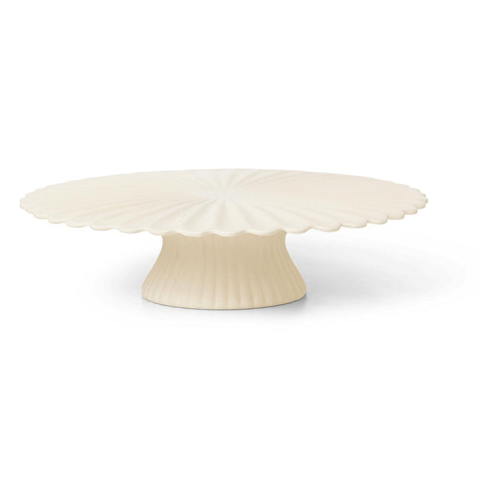 Instantly drawing attention, the sculptural, ceramic Fountain Cake Stand is an elevated dessert stand with a soft, pleated expression. Inspired by the shape of classic fountains, it can be used as a centrepiece at a wedding reception, a charming addition to a tea party, or styled to add a touch of elegance to the kitchen counter. The stand features a glazed top surface for easy cleaning.
