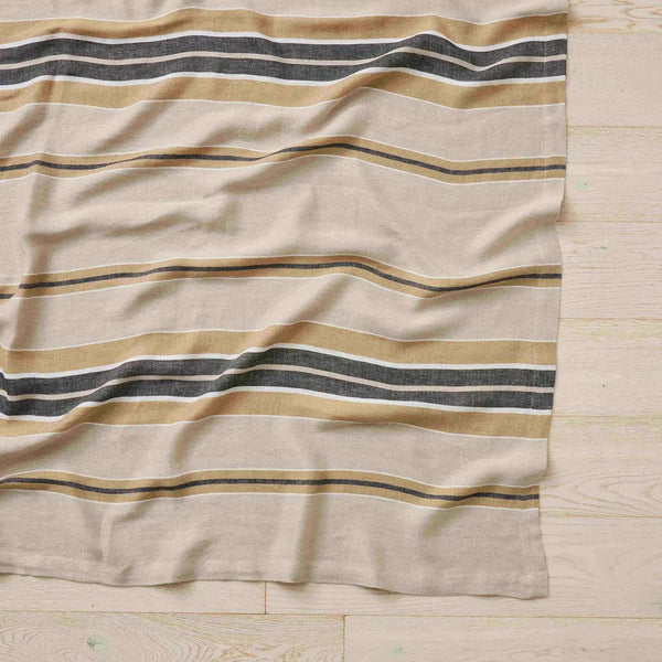 Aero finished with a luxurious, soft vintage feel, Franco is a 100% linen, reversible twill weave throw that features a gorgeous, on-trend placement stripe that is perfect for bringing dimension, warmth, and a fresh aesthetic. Generously sized at 150cm x 240cm, Franco is ideal for relaxing on the couch or over top of the bed during warmer nights — a perfect throw for summer. The stripe of Franco delivers a richness in tone and is soft and weighty — the perfect addition to the end of your bed. The Shadow colourway of Franco will enrich a neutral space with its dark undertone by adding subtle texture and stripes. All of our throws make the perfect companion over cooler days and nights, and can also be enjoyed outdoors — whether over your knees when dining alfresco, or even as a picnic blanket! It is recommended that all throws must be stored indoors for longevity and enduring comfort.