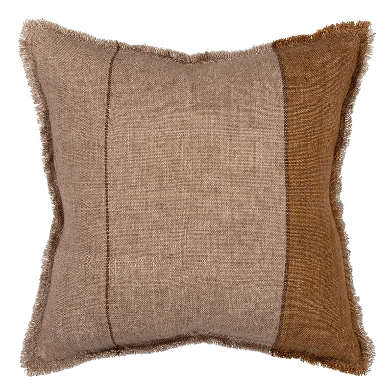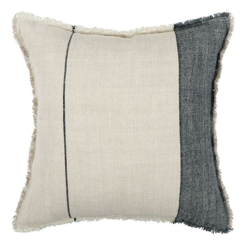 Country charm is given a contemporary twist, with the raw fringing and understated texture of our Frankton cushion. Crafted from thick, textural linen, the asymmetric design creates a modern take on classic style. Shades of ecru and navy create a relaxed feel, and pair effortlessly with Cyprian Oatmeal and Arcadia Cloudburst cushions.