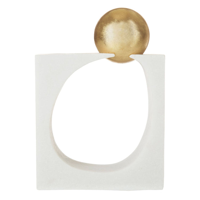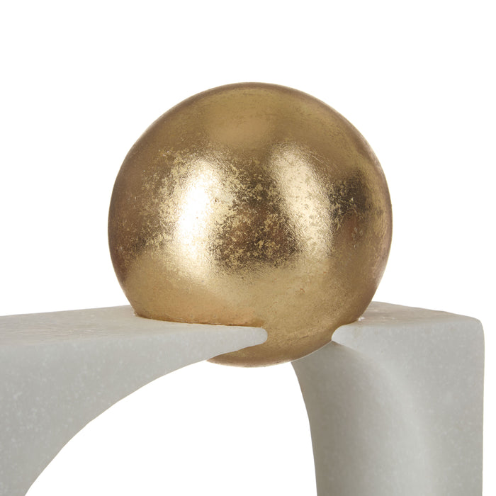 Decorative sculptures are a great way to add charm and character to your space. This Fretta Sculpture is made from resin with a white marble look finish balancing a brass finished sphere. Place it on a bookshelf, console or coffee table to liven up your space with a stylish aesthetic. Available in small and large sizes.