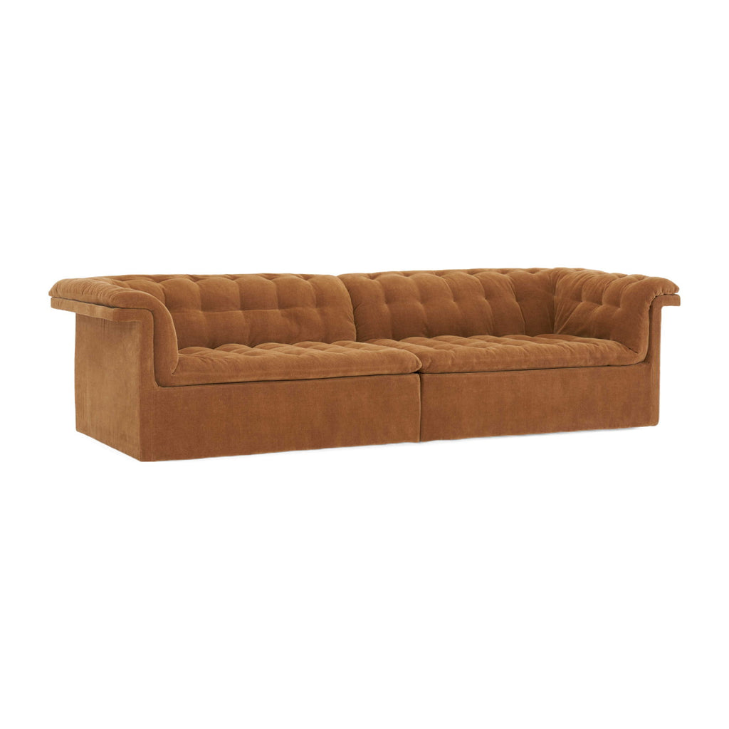 Furrow sofa treads the line between classical and modern, artfully combining the Chesterfield-inspired tufted motif with a sleek, contemporary form, managing to be whimsical and sophisticated at the same time.