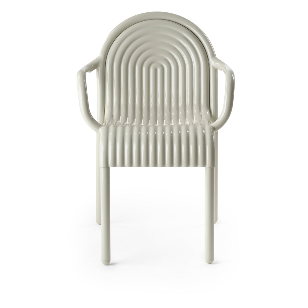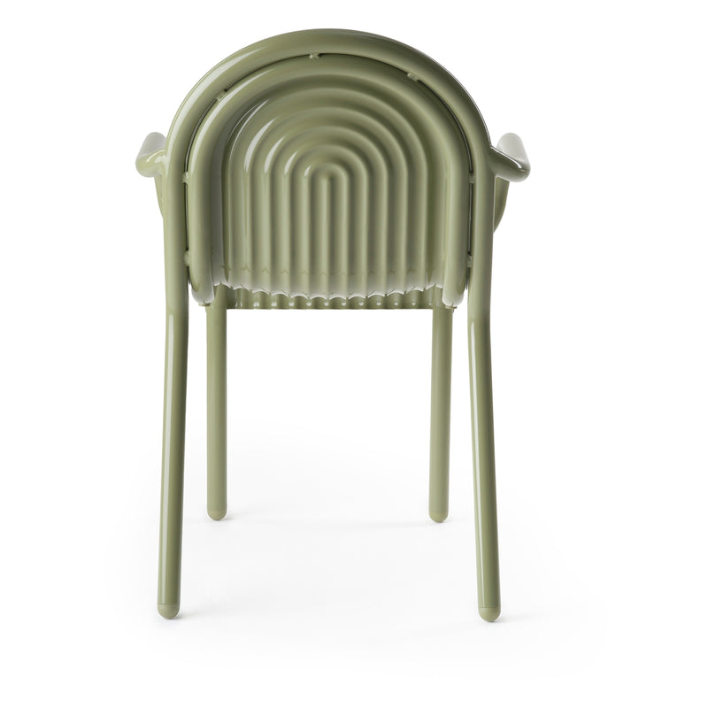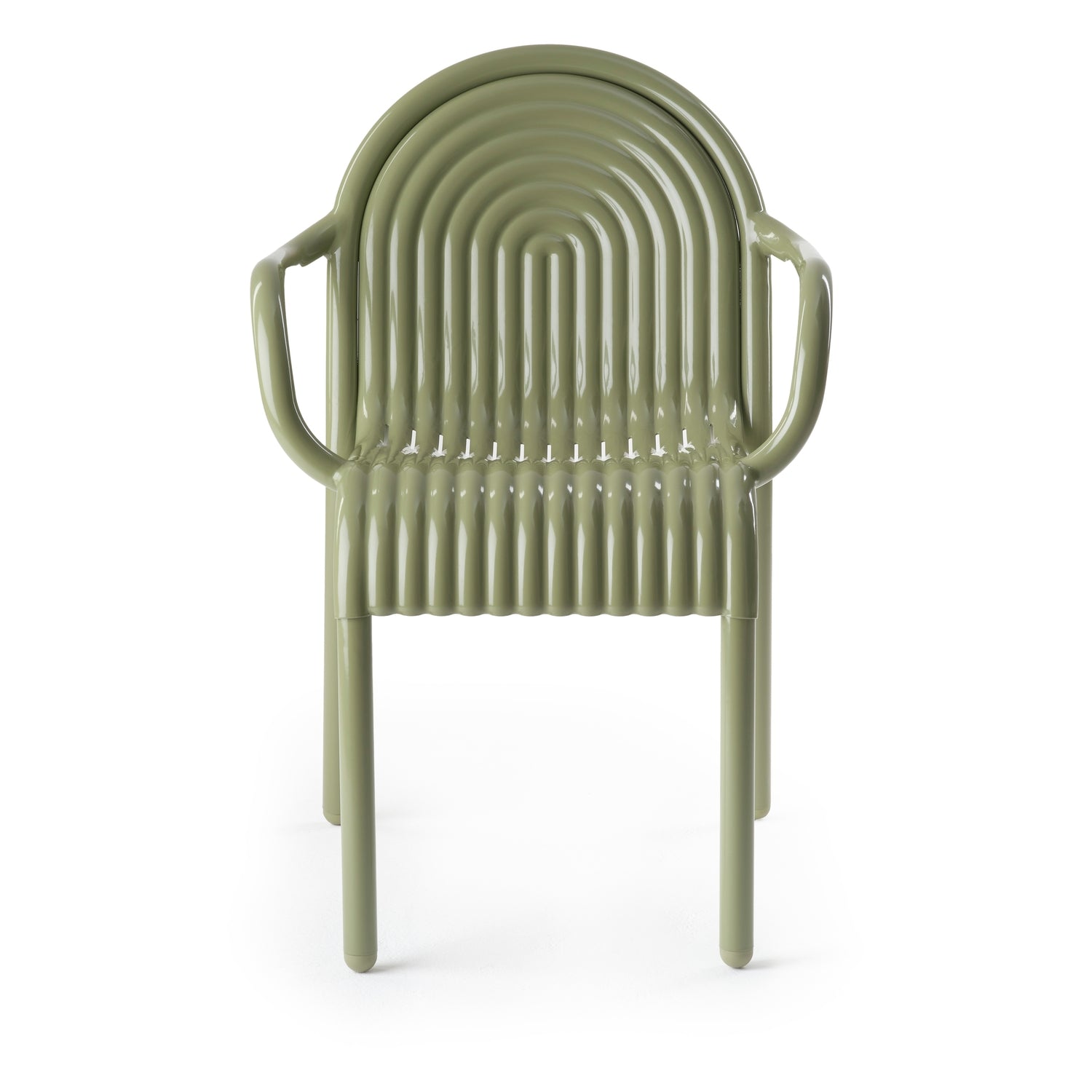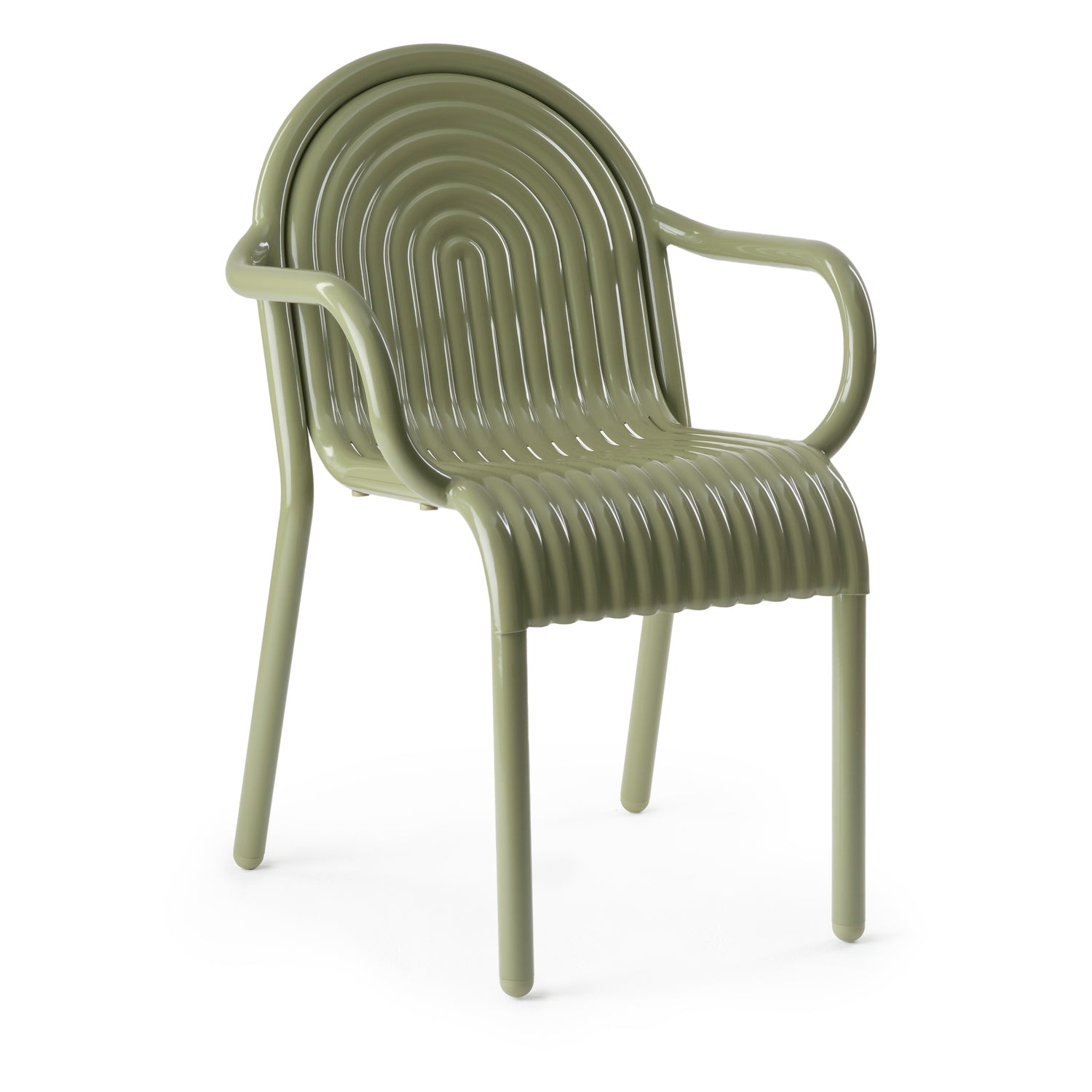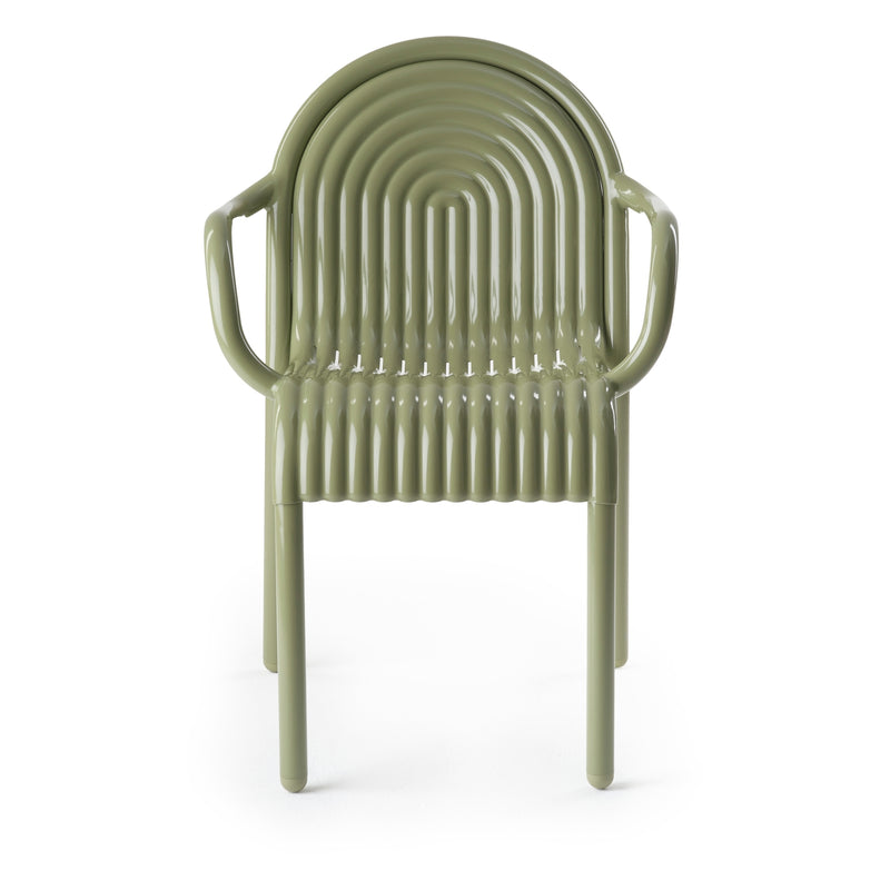 Introducing the GROOVE Arm Chair, part of Tom Dixon's first outdoor collection. The GROOVE Arm Chair features distinctive art deco style raised ridges and is made from premium aluminium. This outdoor Arm Chair utilises cutting-edge manufacturing techniques for superior durability and features a high-quality powder-coated finish, ensuring suitability for outdoor use and is both solvent and VOC-free. Developed from over a decade of research, the GROOVE collection includes accompanying outdoor cushions and tables, and allows for efficient stacking and storing. Available in either MOSS or PUTTY.