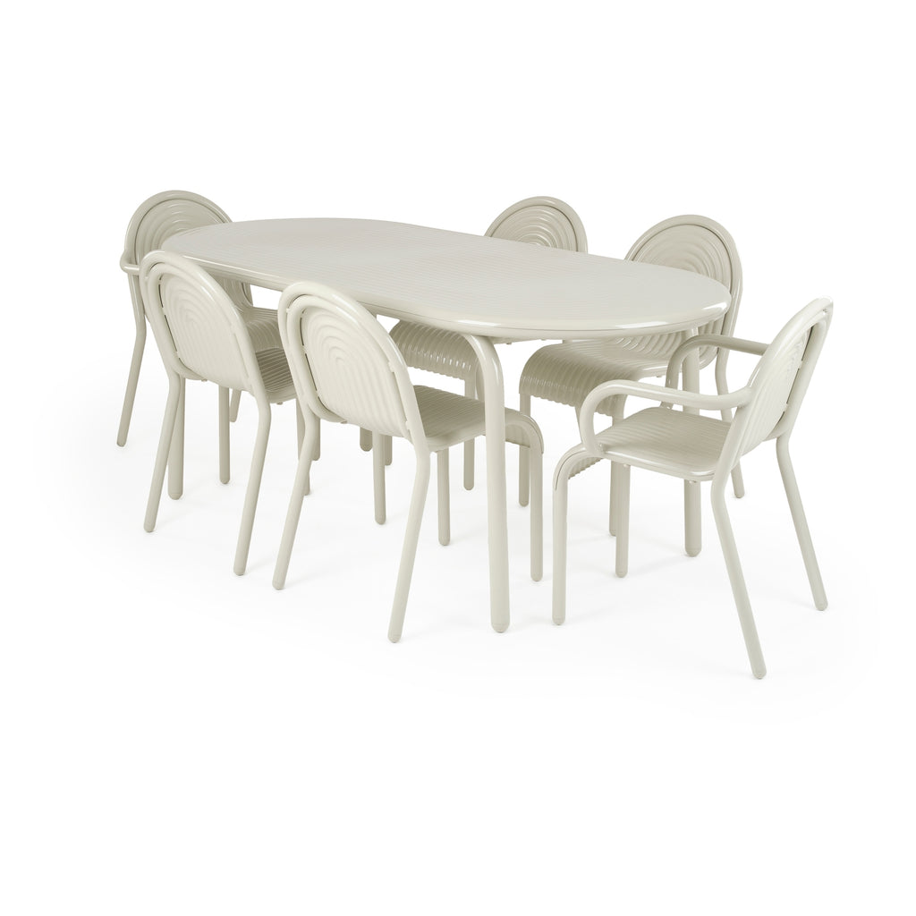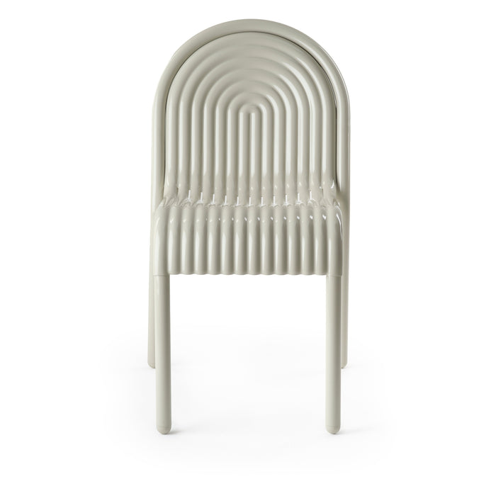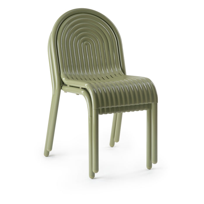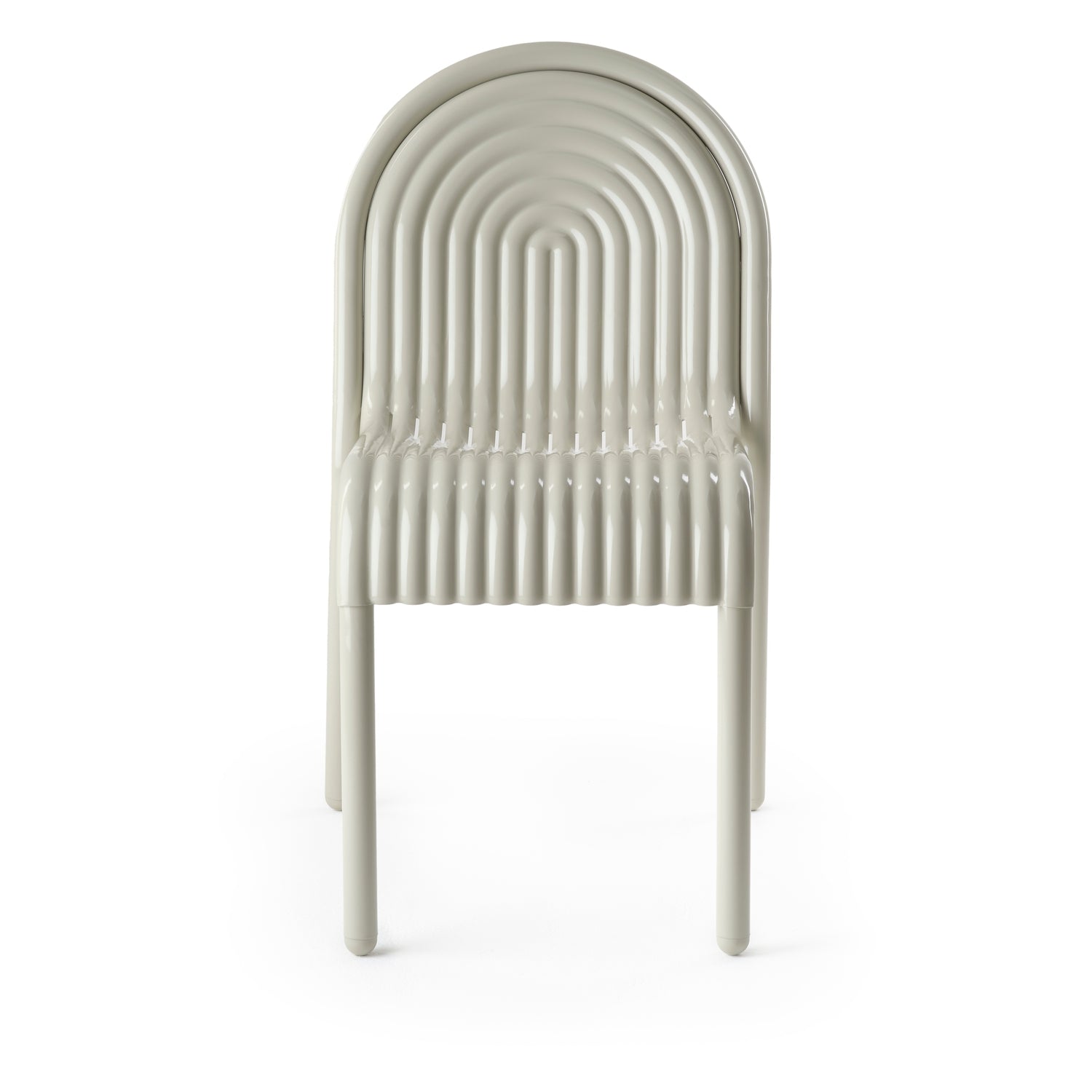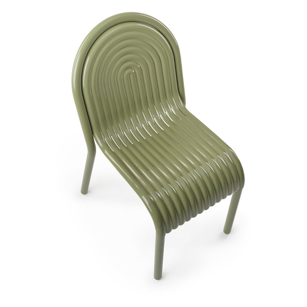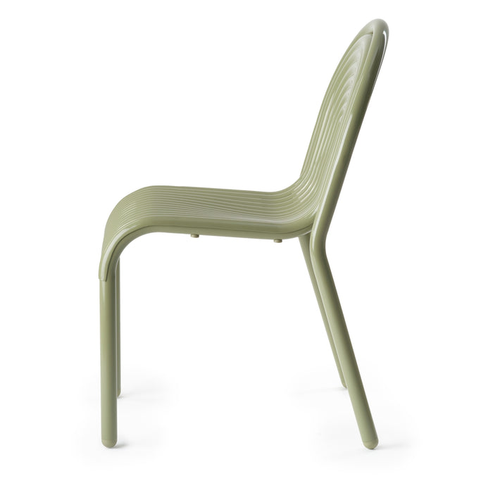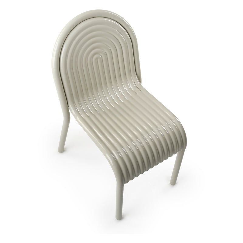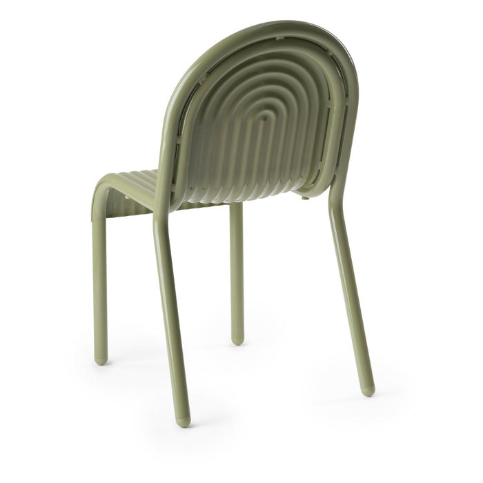 Discover the GROOVE Side Chair, part of Tom Dixon's first outdoor collection. Inspired by the 2021 HYDRO aluminium chair, the GROOVE Side Chair features distinctive art deco style raised ridges and is made from premium aluminium. The GROOVE Side Chair utilises cutting-edge manufacturing techniques for superior durability and features a high-quality powder-coated finish, ensuring suitability for outdoor use and is both solvent and VOC-free. Developed from over a decade of research, the GROOVE collection includes accompanying outdoor cushions and allows for efficient stacking and storing. Available in either MOSS or PUTTY.