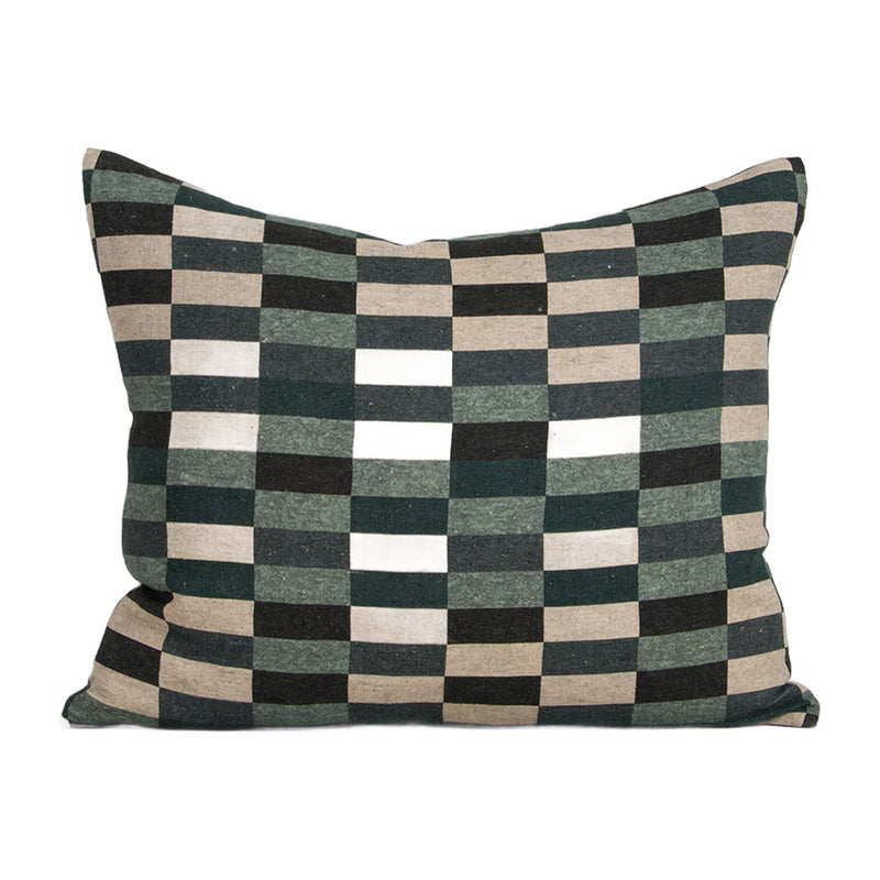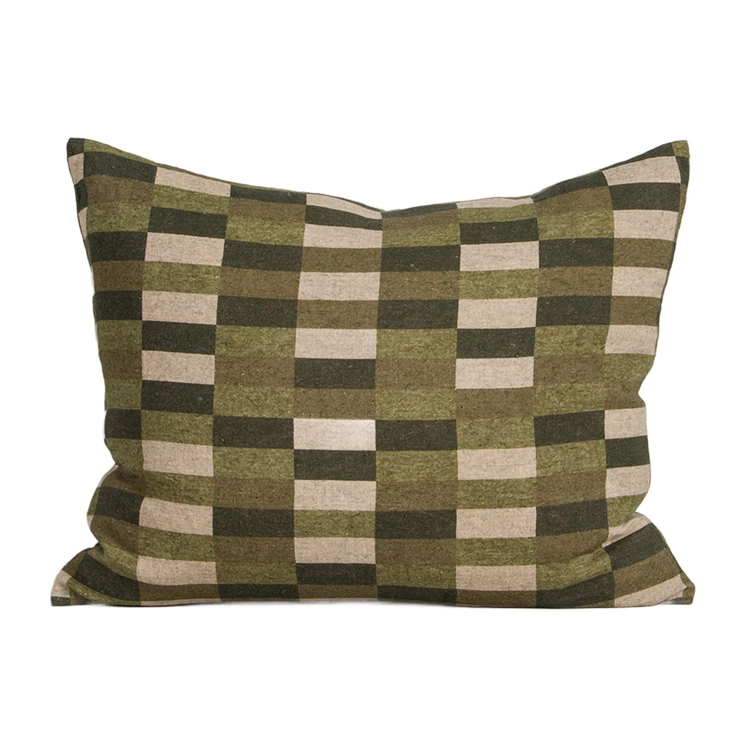 Nature meets geometry in the grid-patterned design of the Hugo lumbar cushion. Printed on a pure linen base, the moss-green palette echoes the varied shades of forest undergrowth, bringing a grounded, graphic element to layered interiors.