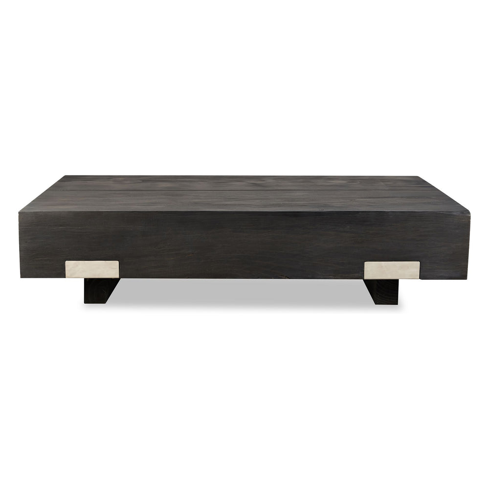 New Zealand FSC Pine Wood Coffee Table, Made from two Solid Pieces of Wood in hand-finished black. Polished stainless steel Hardware detailing on all four corners.Its overflowing elegance makes it suitable beside any living room while its simple and clean design makes for a modern look.