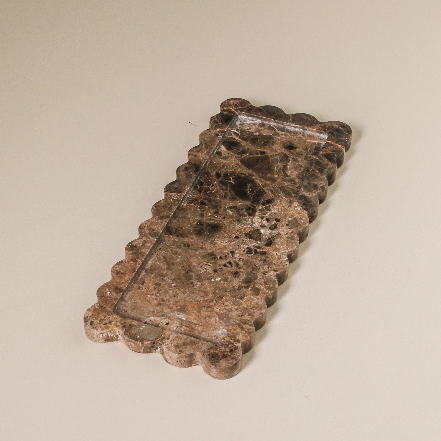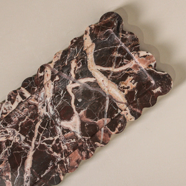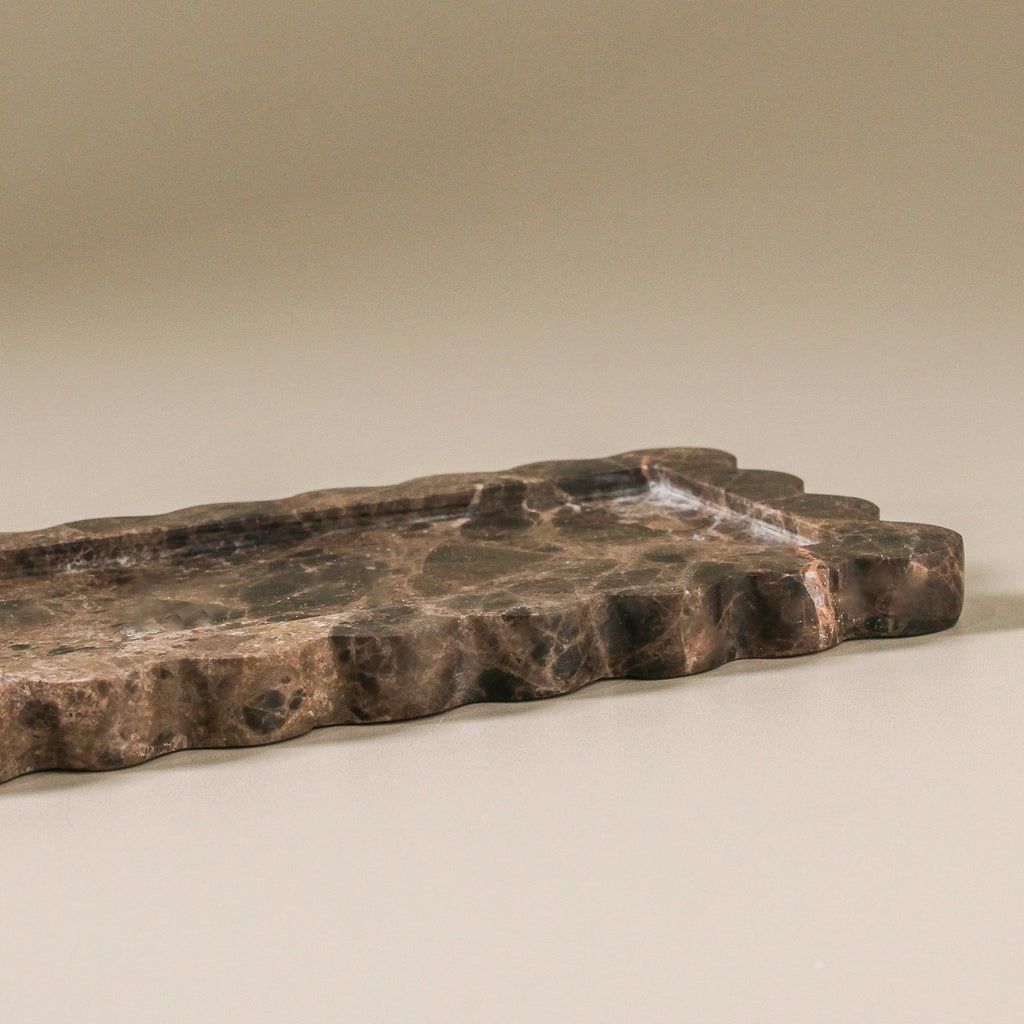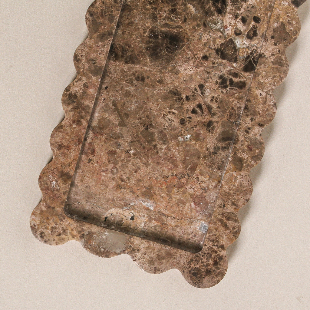 Designed to bring balance and quiet refinement to your styling, the Julisse Tray pairs soft scalloped edges with an elongated rectangular form—ideal for console tables, coffee tables or bedside surfaces. This sculptural marble tray blends form and function, acting as both a catch-all and a styling platform for your daily rituals.