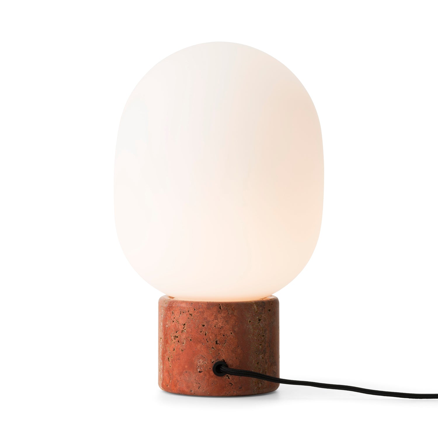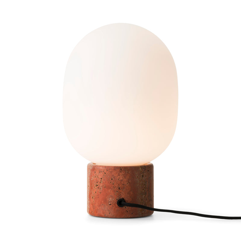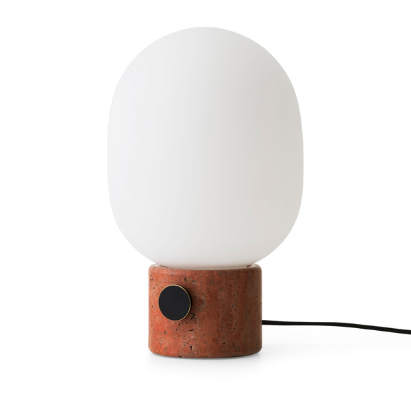 An instant classic, the JWDA Table Lamp is the kind of sculptural piece that brings new life to a room, illuminating a window sill, shelf or side table with its warm, glare-free glow. Inspired by traditional oil lamps, its contrast of rounded opal glass against a solid base creates a balanced and intriguing silhouette. The timeless indoor lamp is available in two marble types and red travertine stone, fitted with either a bronzed or brushed brass dimmer switch to control the light intensity.