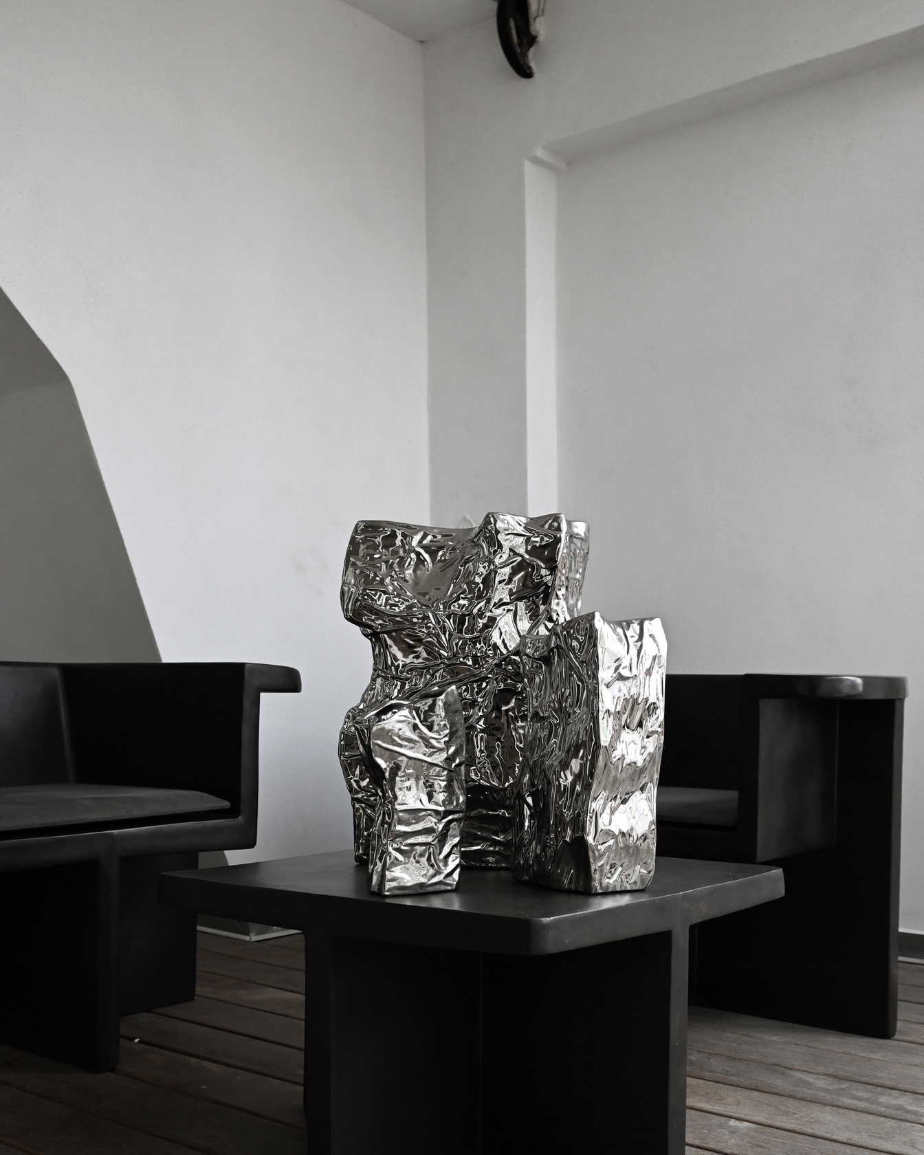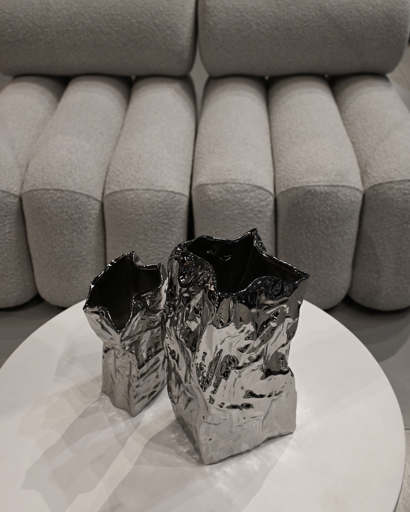 Kami comes in three sizes and is available in two colors. Choose between the crisp Bone White, emphasising the imitation of crumbled paper bags, or the Chrome colour with a shiny, mirror-like surface, adding a sleek and modern expression to the interior.