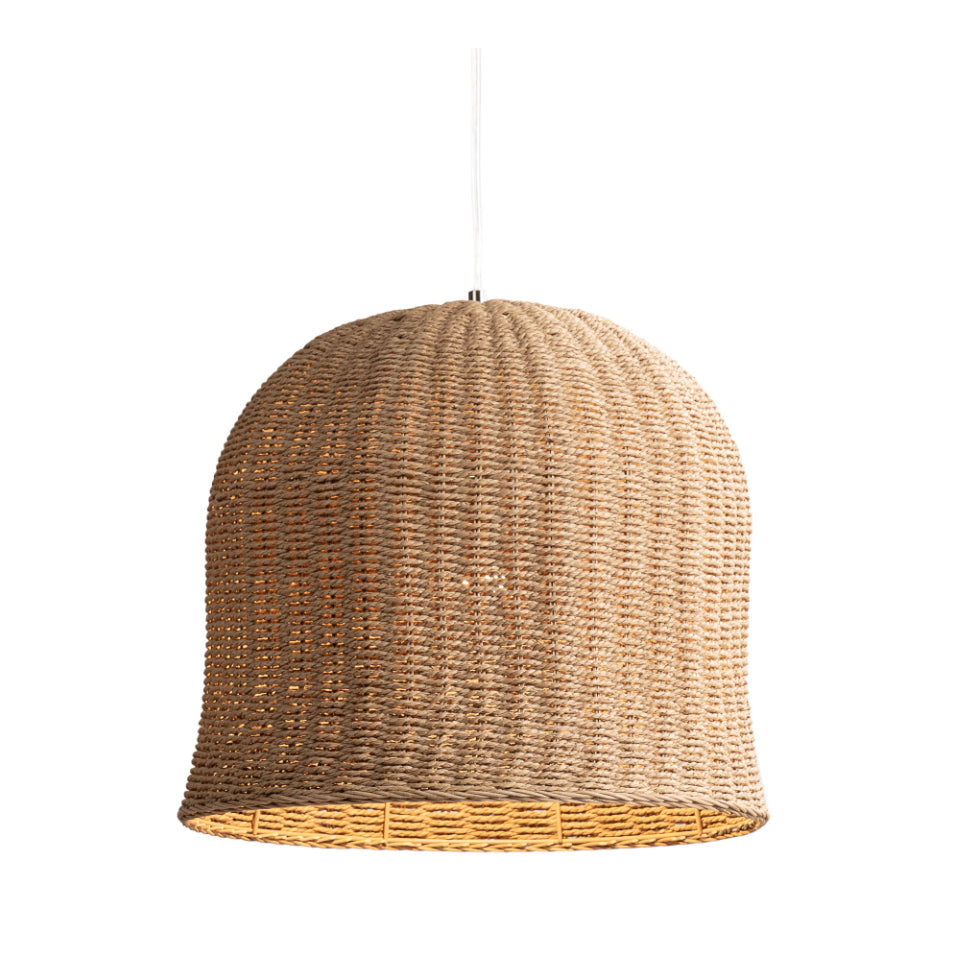 The Kiawa Pendant Light has a relaxed feel for the finishing touch to your Coastal or Boho interior style. Its’ hand woven, bell shaped Rattan shade is richly textured with a warm natural colour and is supplied with a 2.8m White cloth cord suspension & Satin White ceiling cup.