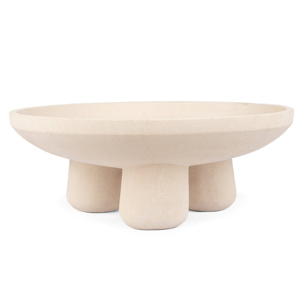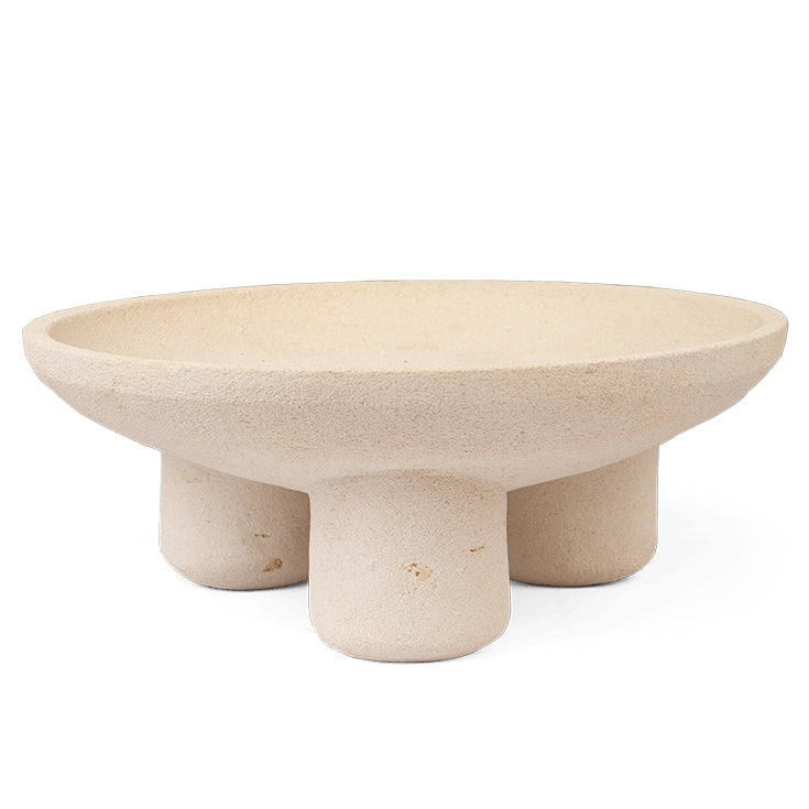 The Kiara Bowl range is a shallow bowled, one-piece, pale local Java sand stone form, hand crafted by dBodhi artisan masons. Multi-functional in use, and sat upon three elliptical pedestal sand stone legs, the Klara bowl is a prominent piece on any item of furniture.